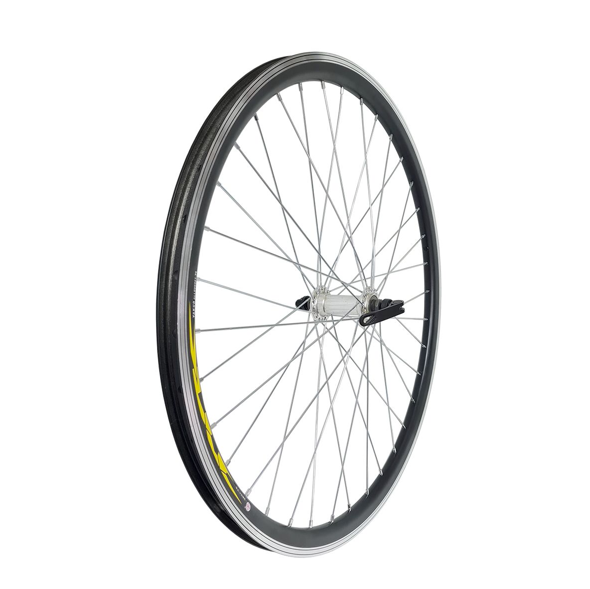Купить Колесо 24" пер., обод дв. ал. б/пист. чёр., ал. втулка,с эксц., серебр.