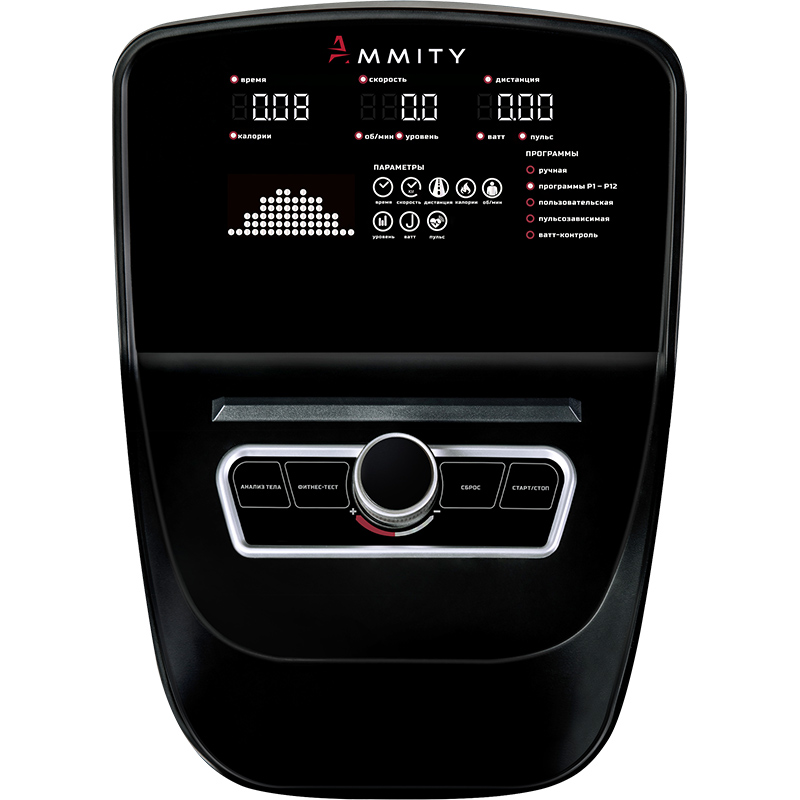 Профессиональная модель AMMITY AMMV 61 RB – это мощный индукционный эргометр с горизонтальной посадкой для домашнего и коммерческого использования в залах небольшой и средней проходимости, корпоративных клубах, гостиничных комплексах. Удобное большое кресло с анатомической спинкой обеспечивает комфорт для любой комплекции, снимает нагрузку с позвоночника, подходит для реабилитации. Индукционная система сопротивления позволяет точно устанавливать уровень нагрузки, моментально изменять или отключать сопротивление, что особенно важно для кардио-тренировок и профессиональных занятий. Нагрузка создается торможением маховика за счет силы воздействия магнитного поля катушки индуктивности, на которую подаётся электрический ток. Отсутствие подвижных колодок и трущихся элементов значительно увеличивают срок службы и надежность тренажеров с индукционной системой сопротивления. Это плавный ход и мягкое изменение сопротивления, отсутствие посторонних звуков и практически бесшумная работа оборудования. Данная модель подключается к электросети 220 В, используемые компоненты класса А гарантируют энергосбережение. Преимуществами энергозависимых тренажеров является постоянное питание консоли и привода – это сохранение и отображение данных до тренировки, во время остановок и окончания, и непрерывный точный уровень сопротивления с первых минут тренировки, вне зависимости от скорости. Генераторные модели требуют изначально накопления энергии для включения монитора и при недостаточном заряде и остановках часто выключаются, прерывая программу, также генератор требует более тщательного обслуживания и периодической замены дорогостоящих аккумуляторов, по сравнению с этим, наличие провода питания и необходимость подключения к сети лишь небольшой дискомфорт и единственный минус модели. Эргометры серии AMMV оснащены профессиональной системой привода, мощной тяжелой рамой и надежным педальным узлом, что позволяет использовать оборудование при максимальной загрузке и тренироваться пользователям любой подготовки. Многопозиционные регулировки посадки и эргономичная конструкция обеспечивают комфорт и безопасность тренировок спортсменам любого роста, рассчитан на вес пользователя до 180 кг. Благодаря своим параметрам и конструкции, велотренажер AMMITY идеально подойдет как для интенсивных тренировок, так и для оздоровительных занятий, вне зависимости от возраста спортсмена.