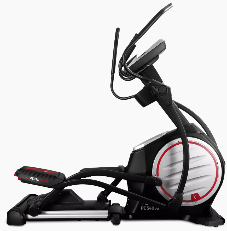 Конструкция тренажера: модель PE 540 AI обеспечивает комфорт и правильное положение для выполнения упражнений пользователям до 180 кг в диапазоне допустимого роста от 160 до 215 cм. Электрическое изменение наклона рампы не только акцентирует нагрузку и увеличивает эффективность тренировок, позволяя максимально глубоко прорабатывать все группы мышц, но и позволяет индивидуально адаптировать посадку на тренажере для максимально удобного положения спортсмена в зависимости от комплекции и спортивной подготовки. Мощный двойной трек с алюминиевыми накладками и электрический подъемник рампы для изменения угла наклона педалей рассчитаны на эксплуатацию пользователями до 180 кг. Наклон регулируется автоматически, нажатием клавиш на консоли и поручнях во время тренировки. Все подвижные сочленения рычагов и педалей имеют качественное подшипниковое соединение для лучшего скольжения и долговечности конструкции. Это обеспечивает стабильность и тишину хода, исключено соскальзывание педали с трека. Наличие вентилятора обеспечивает полный комфорт и позволяет полностью сосредоточиться на достижении желаемого результата.