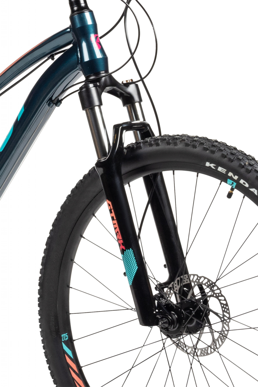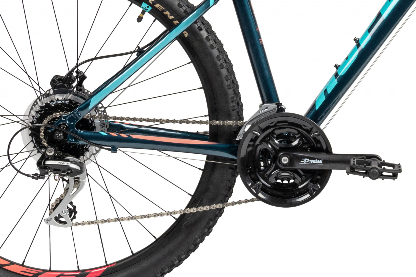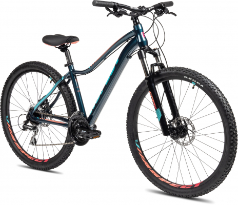 Женский горный велосипед с оборудованием любительского класса Shimano, 24 скорости. Технические особенности: алюминиевая рама ALU 6061 Hydroformed, амортизационная вилка GTMRK 362MLO, двойные алюминиевые обода Alloy Double Wall, дисковые гидравлические тормоза Tektro HD-M275. Подходит для активной езды по различным дорогам и пересеченной местности.