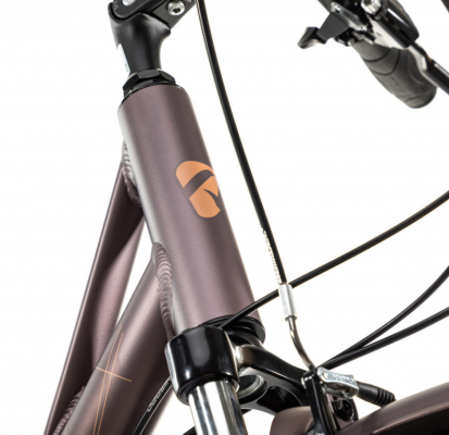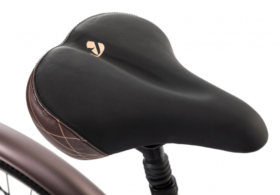 Комфортабельный женский велосипед с оборудованием начального любительского класса Shimano, 21 скорость. Технические особенности: алюминиевая рама Alu 6061, амортизационная вилка Zoom 141, двойные обода Alloy Double Wall, надежные ободные тормоза V-brake, длинные крылья, комфортное седло, амортизированный подседельник, регулируемый вынос. Подходит для прогулочного катания по шоссе и ровным проселочным дорогам.
