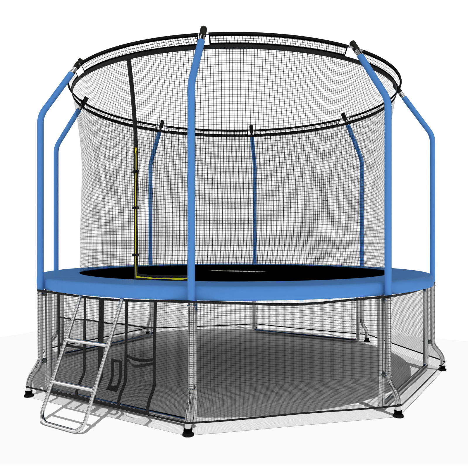 Батуты i-JUMP разработаны в соответствии с последними тенденциями в области безопасности и изготовлены из высококачественных материалов. Данный батут имеет сдвоенные опоры основания, обеспечивающие хорошую устойчивость. Прыжковое полотно сделано в США из полипропиленового мата с защитой от УФ излучения. Пружины имеют бочкообразную форму для правильного распределения сопротивления металла при растяжении. Все металлические части (опоры, пружины и прочее) изготовлены из оцинкованной стали для предотвращения коррозии.
