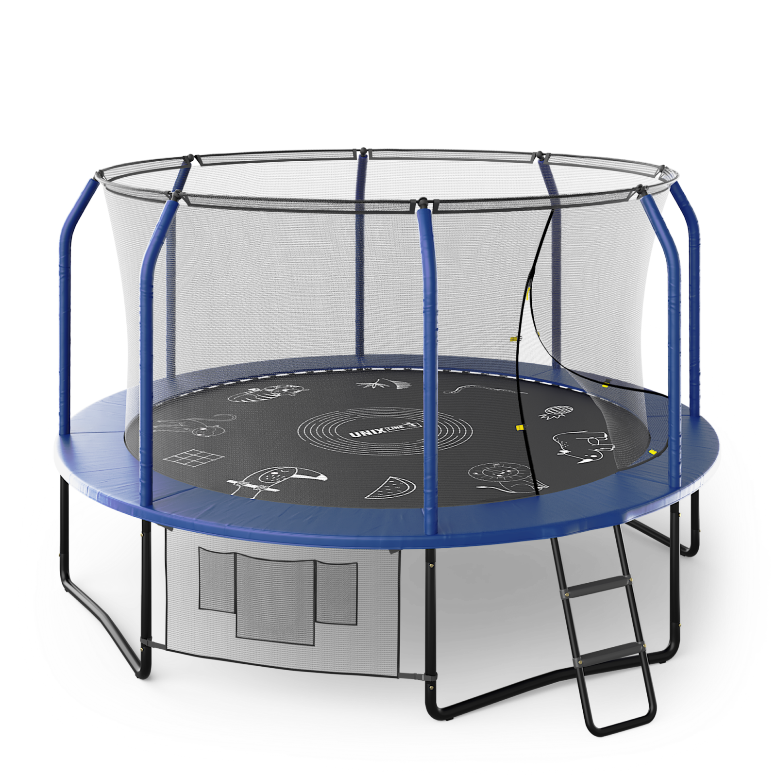 Для реализации самых интересных идей дизайнеры батутов UNIX line SUPREME GAME (4 in 1) специально оставили пустые места на прыжковом полотне. Полная свобода творчества, ограничивающаяся лишь фантазией художника.