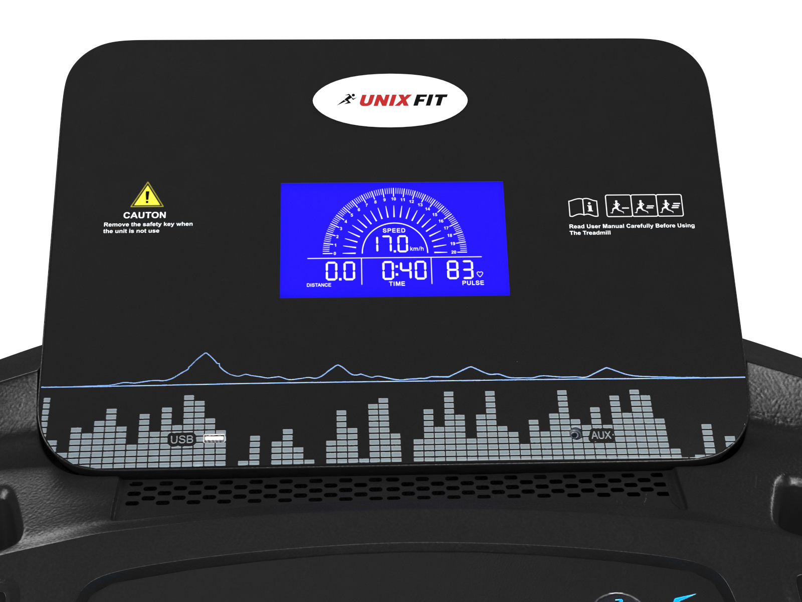 Беговые дорожки серии MX разработаны для ежедневных интенсивных тренировок спортсменов любого уровня подготовки. Все модели имеют автоматическую регулировку угла наклона беговой поверхности, поддержку Bluetooth 4.0. и нагрудного кардиодатчика.Беговая дорожка UNIXFIT™ MX-910T это все основные возможности профессионального тренажера у вас дома. Увеличенная толщина деки, мощный двигатель 3.5 л.с. (Shlümdenger Electric) и внушительные размеры бегового полотна позволят ощутить комфорт в движении и получать удовольствие от каждой тренировки, 12 плоских эластомеров и 2 амортизатора снизят нагрузку на позвоночник и суставы.