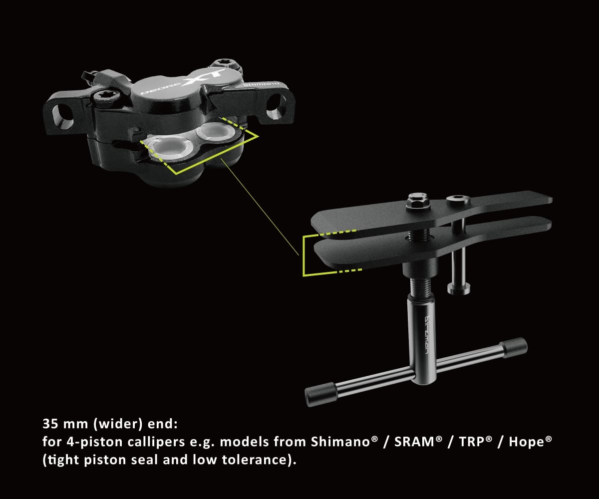 Одновременно вжимает поршни обратно в суппорт с помощью параллельно и симметрично движущихся панелей.Двухсторонняя конструкция, 35-мм конец для 4-поршневых суппортов, например, моделей Shimano®/ SRAM®/ TRP®/ Hope®; и 15-мм конец для 2-поршневых суппортов и суппортов с уникальной конструкцией, например, Magura® MT5/7s.