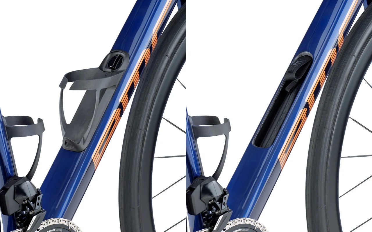 Каждая деталь нижней трубы в BMC Roadmachine 01 продумана до мелочей для оптимальной интеграции внутреннего хранилища.Внутри размещён влагозащищённый карман, специально разработанный для хранения необходимых мелочей во время поездки. Всё аккуратно скрыто под аэродинамичными флягодержателями.