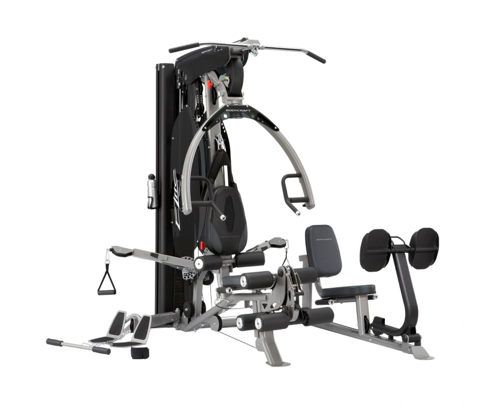 Многофункциональный, долговечный и универсальный силовой комплекс Body Craft Elite V5 с дополнением ELITE LP - жим для ног.Прорезиненные ручки с алюминиевыми наконечникамиПрочная стальная рамаБольшие роликиУдобные и регулируемые сиденьяОртопедическая спинкаОколо 30 различных упражнений на все группы мышц.Запатентованные рычаги на тросах имитируют полный ряд упражнений с гантелями, специальных спортивных и реабилитационных упражнений.