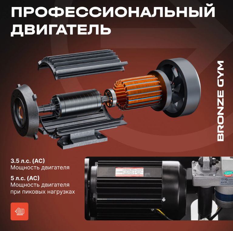 Двигатель мощностью 3,5 л.с. (пиковая мощность — 5 л.с.) обеспечивает плавную и надёжную работу при скорости от 1 до 20 км/ч, что позволяет настроить тренировку под различные нужды — от лёгкого бега до интенсивных сессий. Беговое полотно представляет собой широкие возможности и простор действий для пользователей. Размеры составляют 150 см в длину и 50 см в ширину, а несколько слоев полотна говорят о его долговечности. Электронная регулировка угла наклона в диапазоне от 1% до 18% открывает дополнительные возможности, позволяя варьировать нагрузку и прорабатывать различные группы мышц.