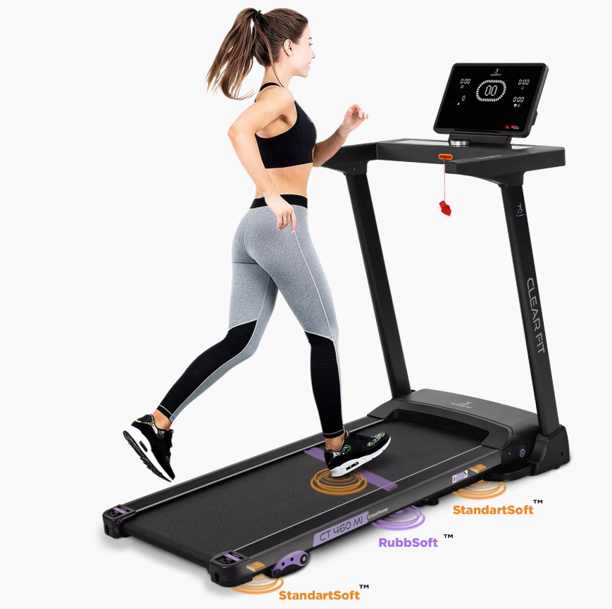 Беговая дорожка для дома Clear Fit серия CrossPower модель CT 460 MI. Оптимальный выбор для комфортных домашних тренировок бегом и ходьбой: просторное полотно 450 х 1200 мм, 3 уровня угла наклона, мощный двигатель и качественная амортизация. Надежный, бесшумный двигатель беговых дорожек серии CrossPower развивает скорость в диапазоне от 0.8 км/ч до 14 км/ч, плавное изменение и стабильное движение на всех оборотах. Прочная дека и усиленная конструкция рассчитаны для пользователей до 140 кг. Двойная система амортизации по периметру от ударной нагрузки для суставов и позвоночника обеспечивает комфортные безопасные ходьбу и бег, современная система амортизации подходит для любого возраста.