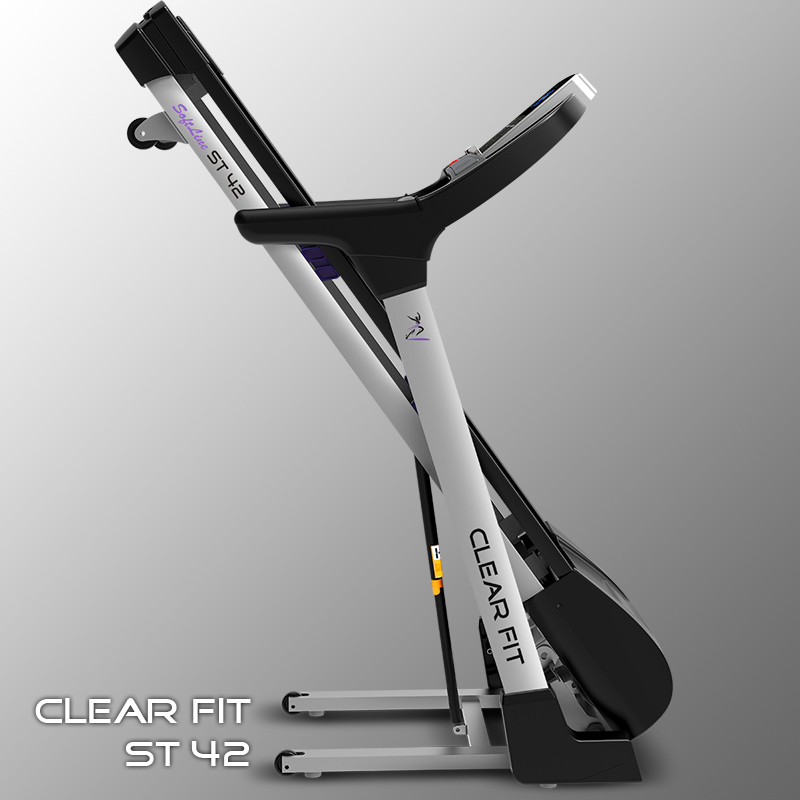 Домашняя беговая дорожка Clear Fit ST 42 серии SoftLine идеально подходит для регулярных тренировок. Благодаря качественной амортизации и электрическому наклону деки, тренажер сохраняет все плюсы прогулки на природе, избавит от необходимости выходить из дома в плохую погоду. Мощная и надежная конструкция, вес дорожки без упаковки 64 кг, гарантирует долгую эксплуатацию, комфорт и безопасность. Рекомендованный вес пользователя – до 130 кг. Надежный и качественный двигатель поддерживает диапазон скорости 0,8 - 16км/ч, электрический подъем деки позволяет установить до 15 вариантов наклона. Двойная система амортизации SensibleCushion™ и RidgeCushion™ рассчитана на максимальную безопасность и бережное отношение к суставам при любом выбранном типе тренировки, от ходьбы до бега, с нагрузкой и без. Размер бегового полотна 42 х 130 см обеспечивает комфортную ходьбу пользователям любой комплекции и возраста, для быстрого бега рекомендованный рост спортсмена до 180 см. Простая и безопасная система складывания оснащена газовым доводчиком, полотно опускается легко и бесшумно, перемещение тренажера облегчают транспортировочные ролики.