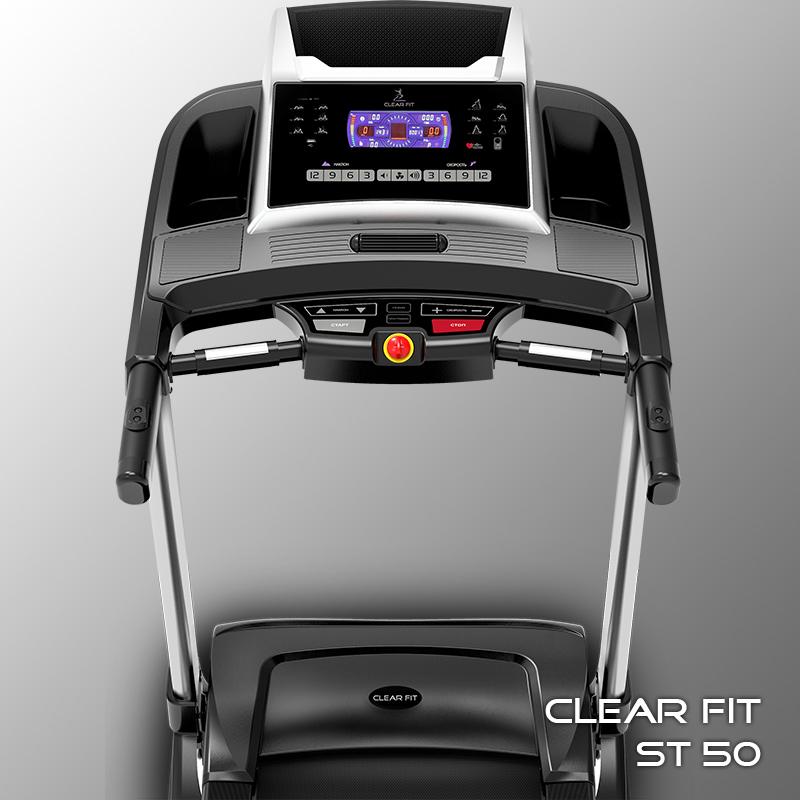Беговая дорожка Clear Fit ST 50 серии SoftLine – полный комплект параметров и высоких технических показателей для разноплановых домашних тренировок широкому кругу пользователей, без ограничения по возрасту и комплекции. Просторное беговое полотно 500 х 1400 мм, мощный двигатель, обеспечивающий стабильную скорость до 20 км/ч, 15 уровней наклона, качественные комплектующие и современное управление с расширенным набором функций – учитывают весь спектр возможных условий от самого требовательного пользователя. Прогрессивная зонированная амортизация серии SoftLine у этой модели состоит из 4 типов эластомеров: классическая система SensibleCushion™ по периметру снимает общую ударную нагрузку, адаптивные подушки AirCushion™ работают в зависимости от скорости и веса спортсмена, смягчая «принимающую» зону, в толчковой зоне последовательно расположены PillarCushion™ и SternDamper™, которые подстраивают жесткость под выбранный темп спортсмена – это не только максимальная безопасность и бережное отношение к суставам, но и комфорт движения, приближенный к естественным условиям тренировки. Мощная рама, эргономичная конструкция и качественные комплектующие гарантирует долгую эксплуатацию и безопасность. Рекомендованный вес пользователя – до 140 кг. Простая и безопасная система складывания оснащена газовым доводчиком, легко и бесшумно, для перемещения тренажера облегчают транспортировочные ролики.