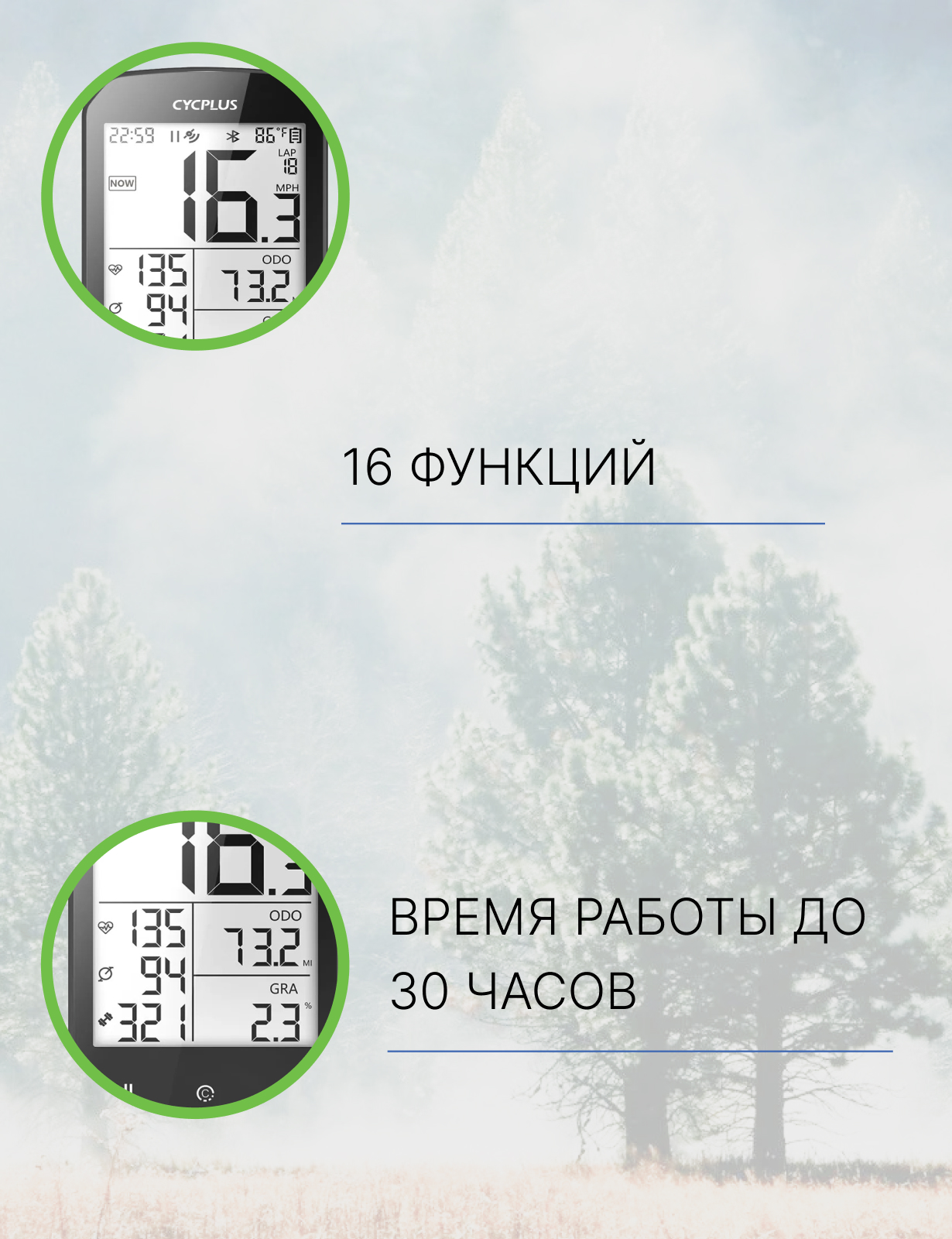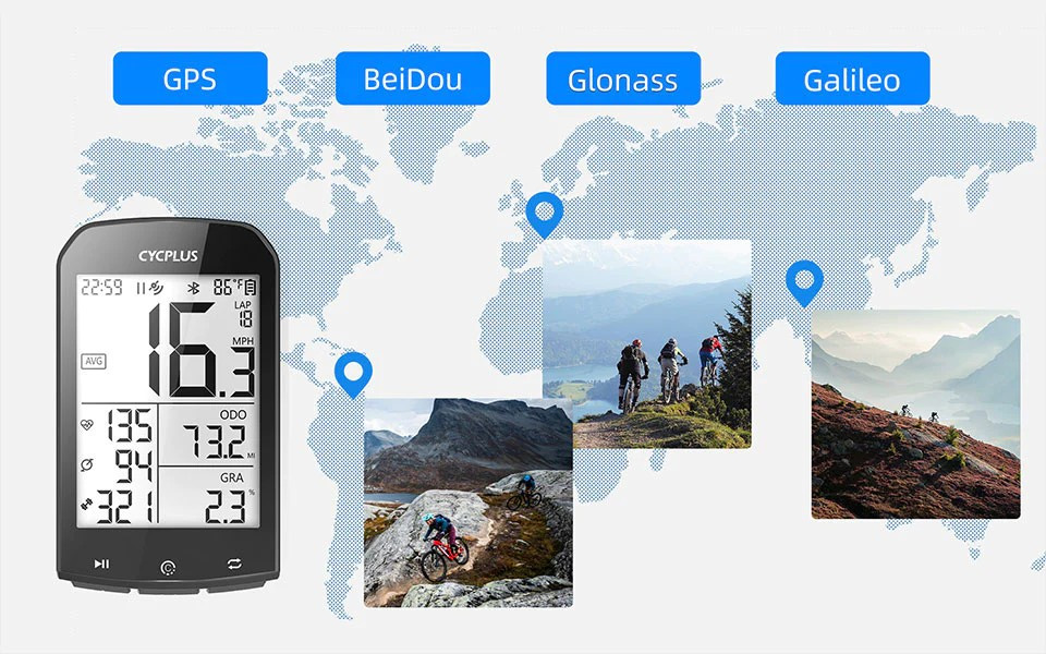 Cycplus M1 - это беспроводной GPS-велокомпьютер, который помогает спортсмену отслеживать до 10 типов полезных данных и корректировать программу тренировок. Вес устройства - 77,5 грамм.