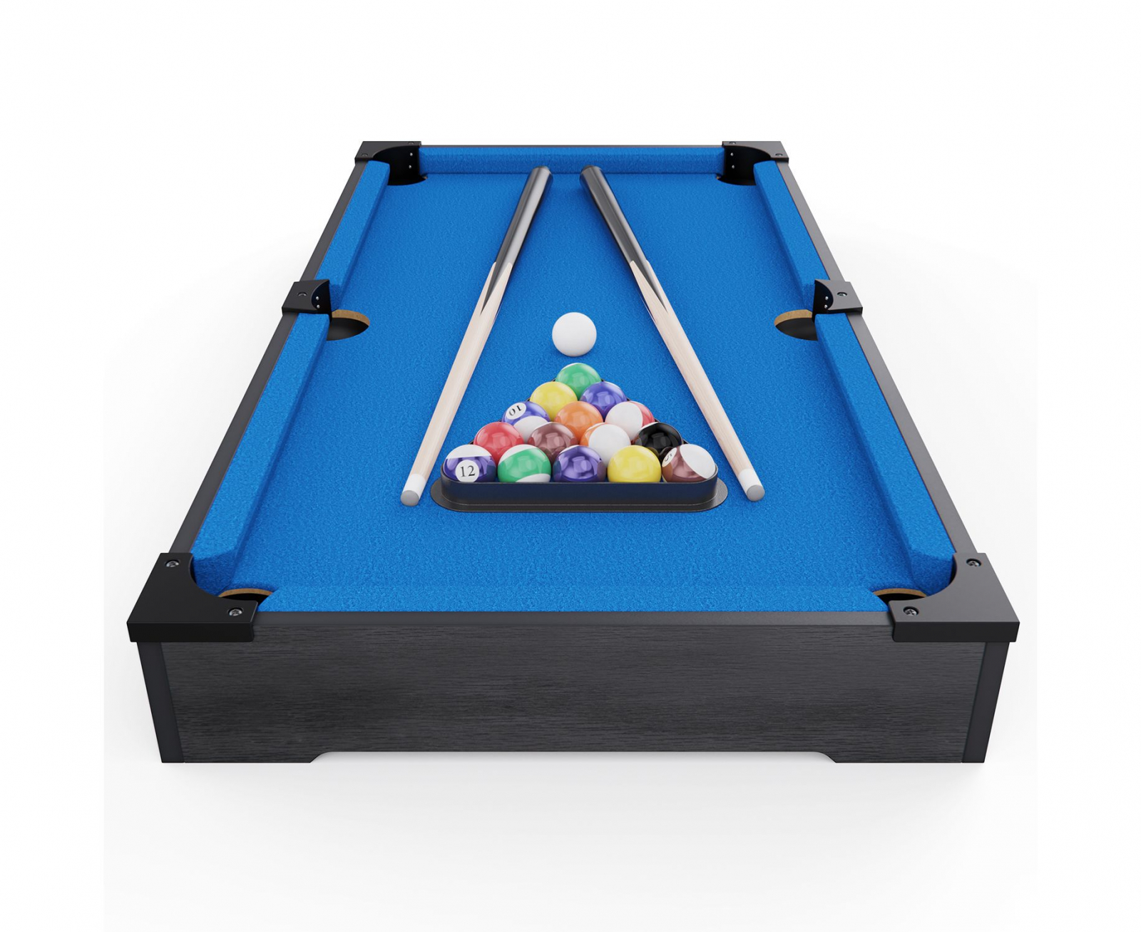 Диаметр шара — 25 мм, длина кия — 45,7 см. Размеры идеально адаптированы для настольного формата, сохраняя при этом атмосферу классического бильярда. В набор входят 2 кия, комплект шаров, треугольник для их расстановки и мел. Всё необходимое уже включено, поэтому можно сразу приступать к игре.