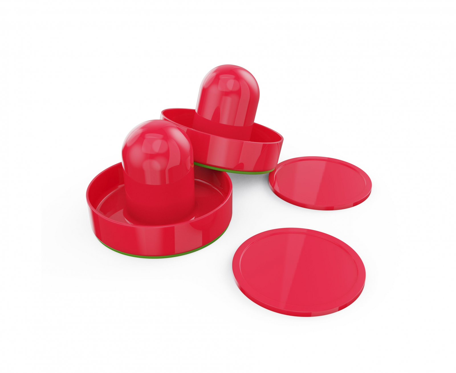 Диаметр бит составляет 65 мм, шайб — 55 мм. В комплект входят: 2 шайбы, 2 биты и механические счётчики очков — всё, что нужно для начала игры. Вы сможете устроить настоящий турнир дома или в компании друзей!