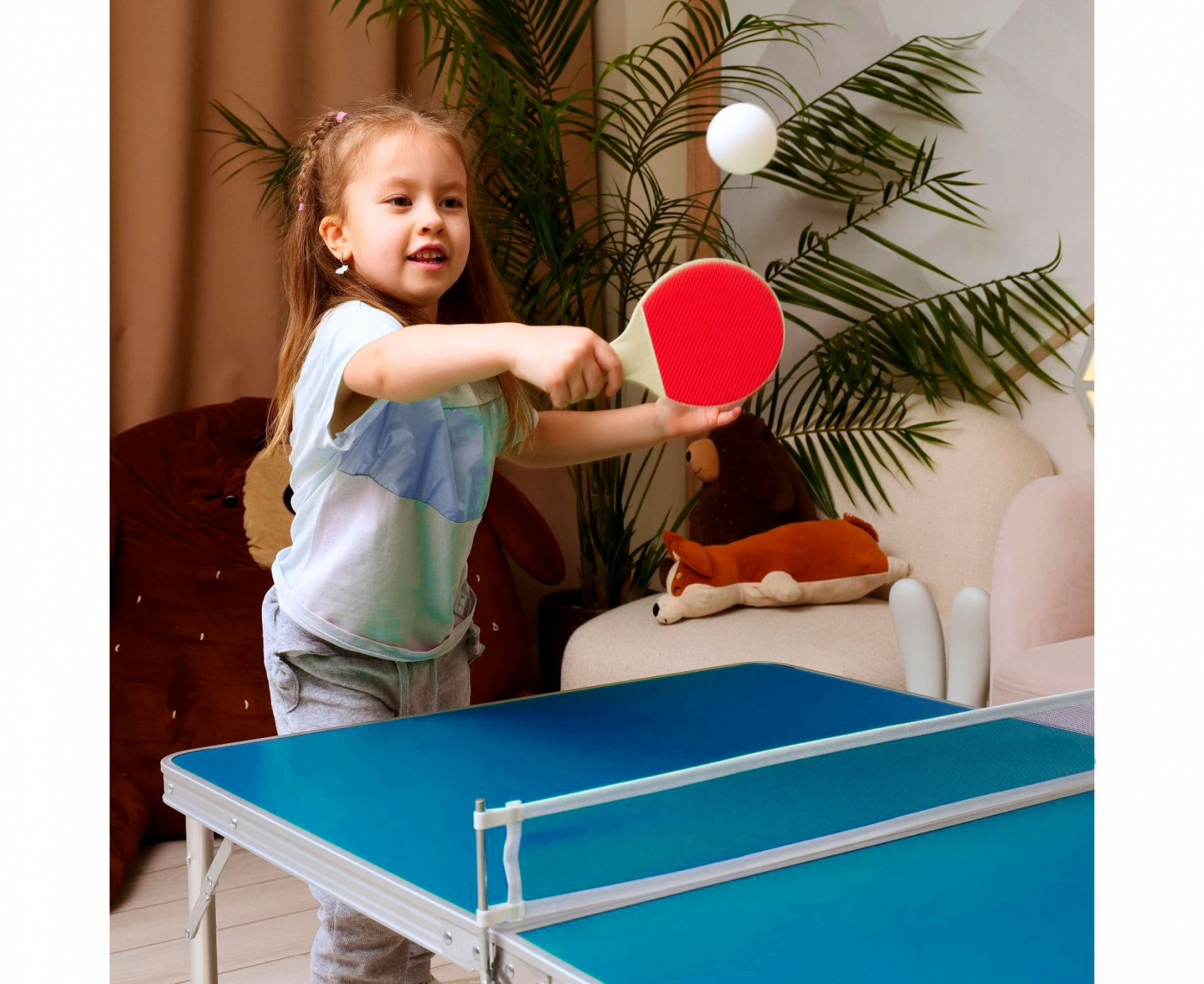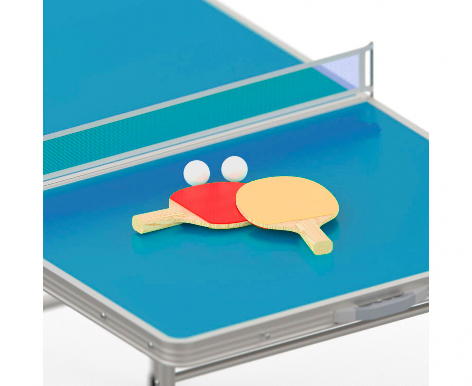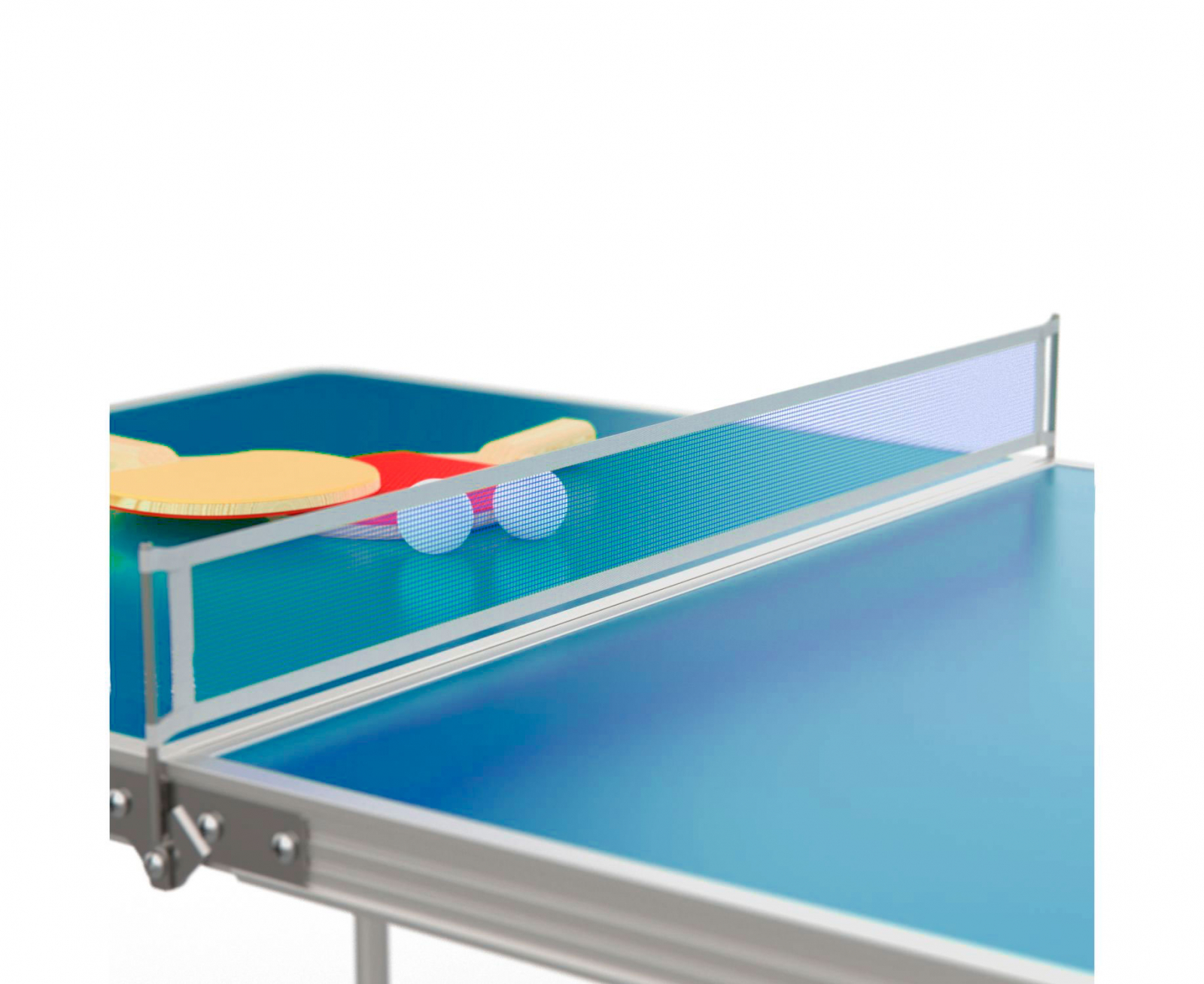 В комплект входят: сетка, 2 ракетки и 2 белых мячика диаметром 40 мм.