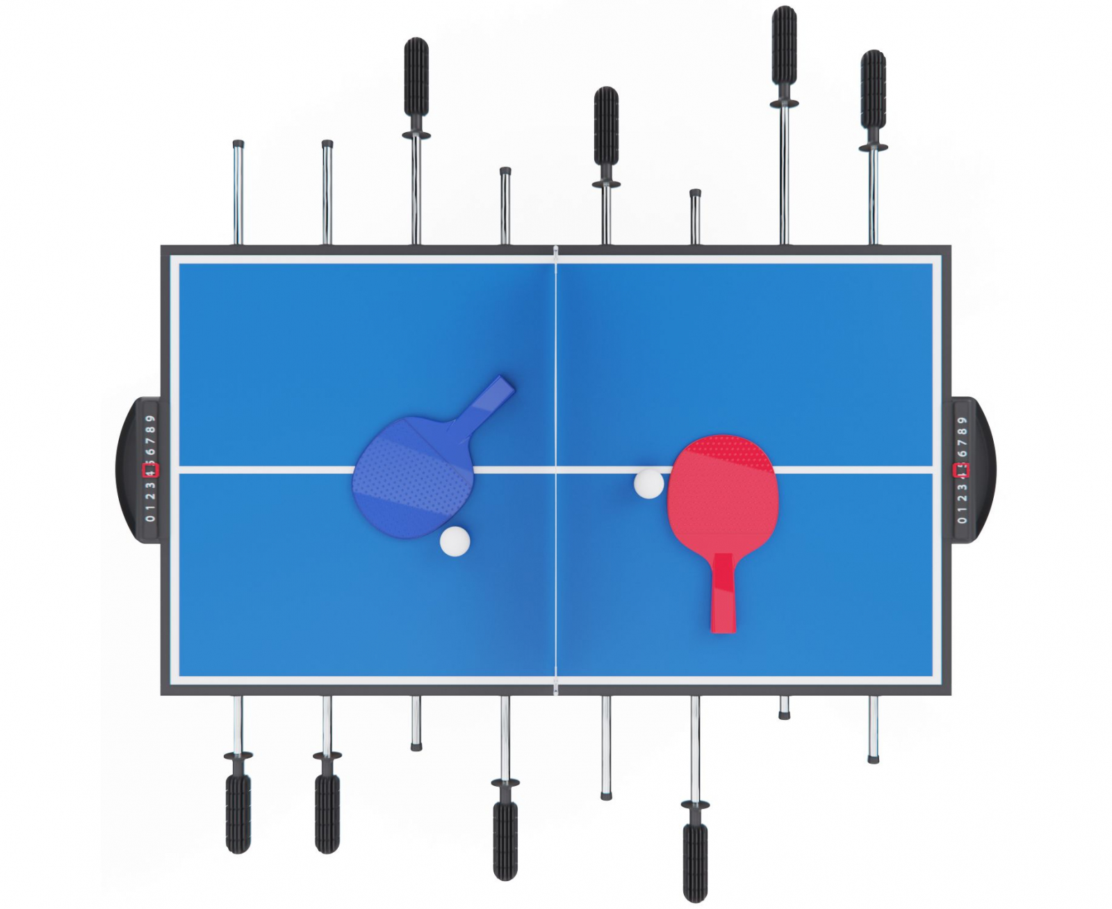 Игровые зоныКаждая игра имеет своё игровое поле оптимального размера:Бильярд — 97,6 х 51 смНастольный теннис — 103,7 х 57 смФутбол — 104,8 х 58 см