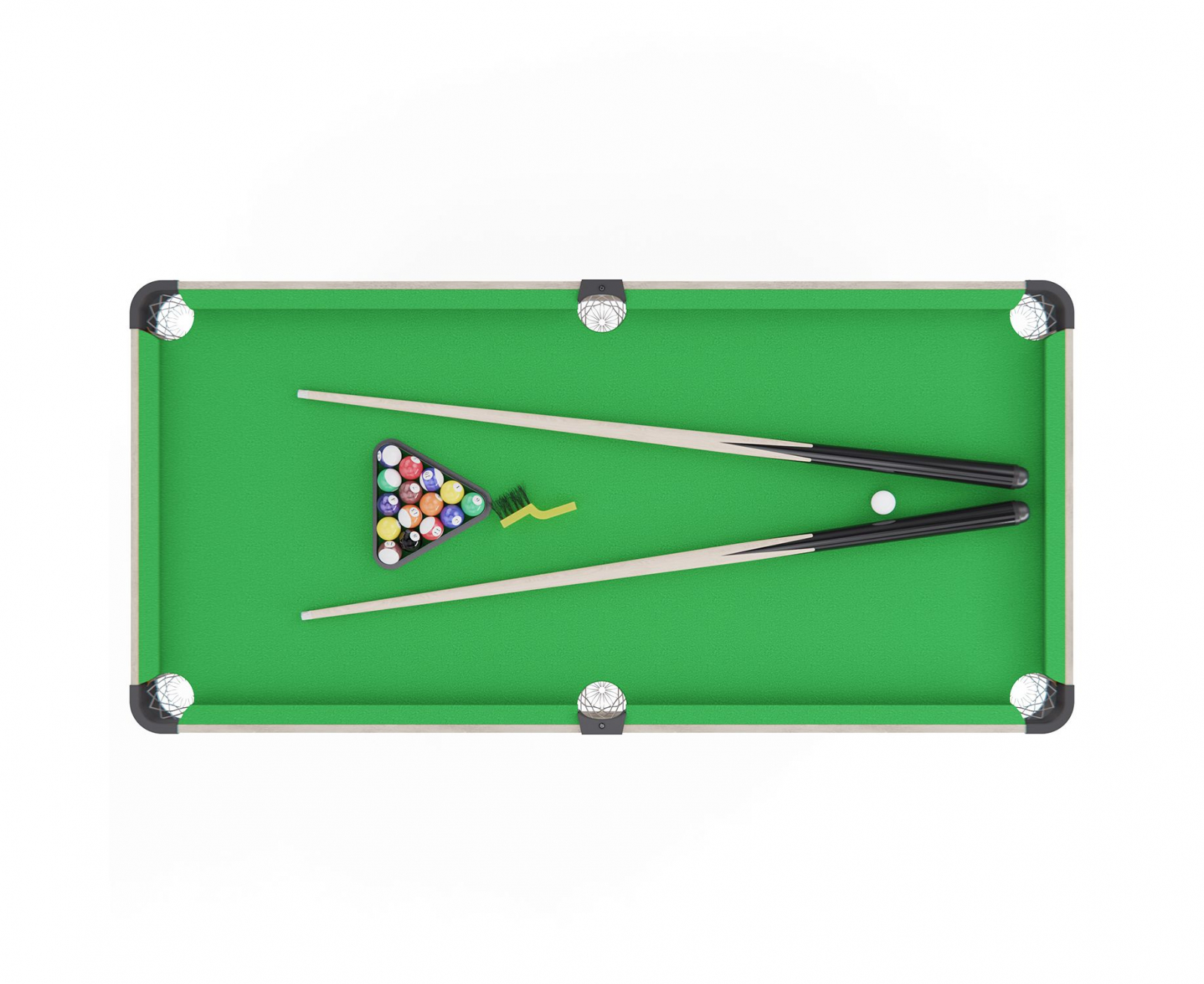 В набор входят все необходимые принадлежности: 2 кия, комплект шаров, 2 мелка, треугольник для расстановки и щётка для ухода за покрытием. Можно сразу начинать играть без дополнительных покупок.