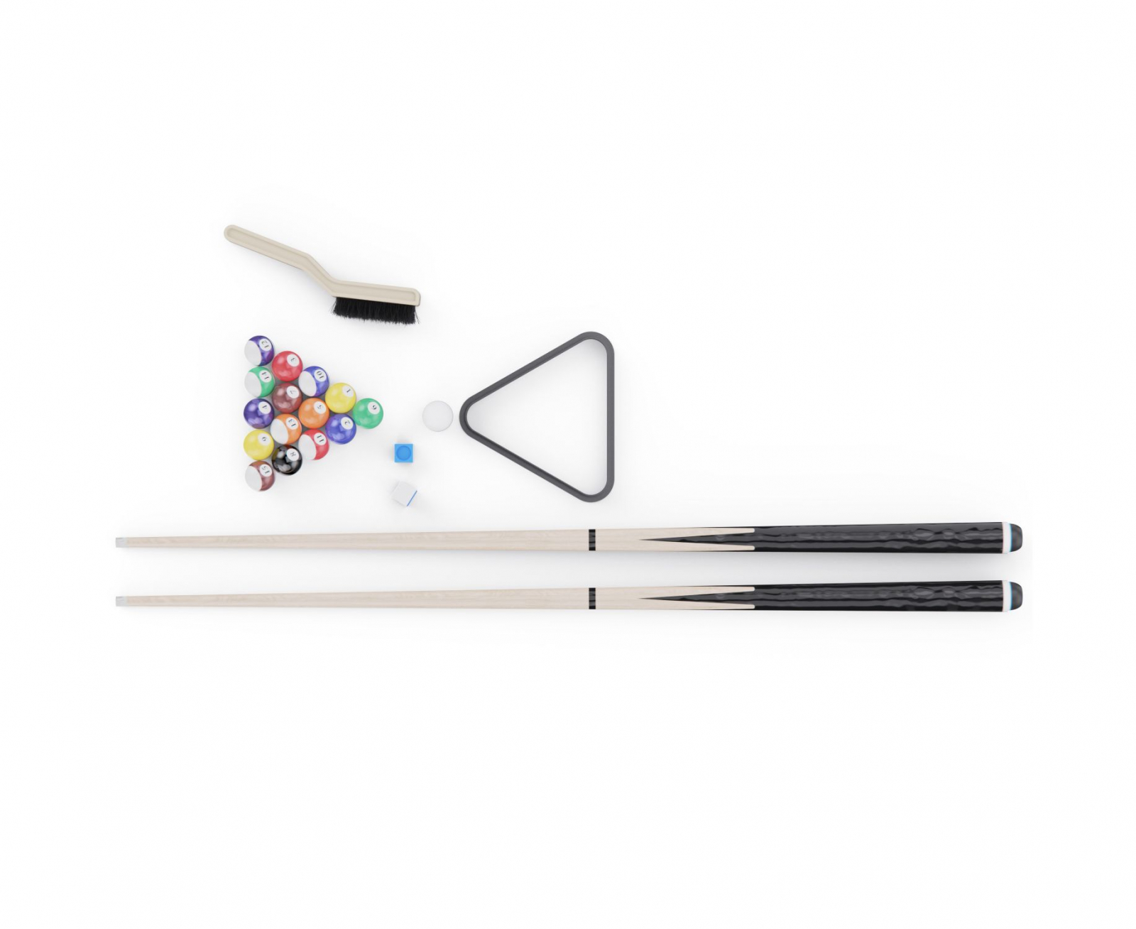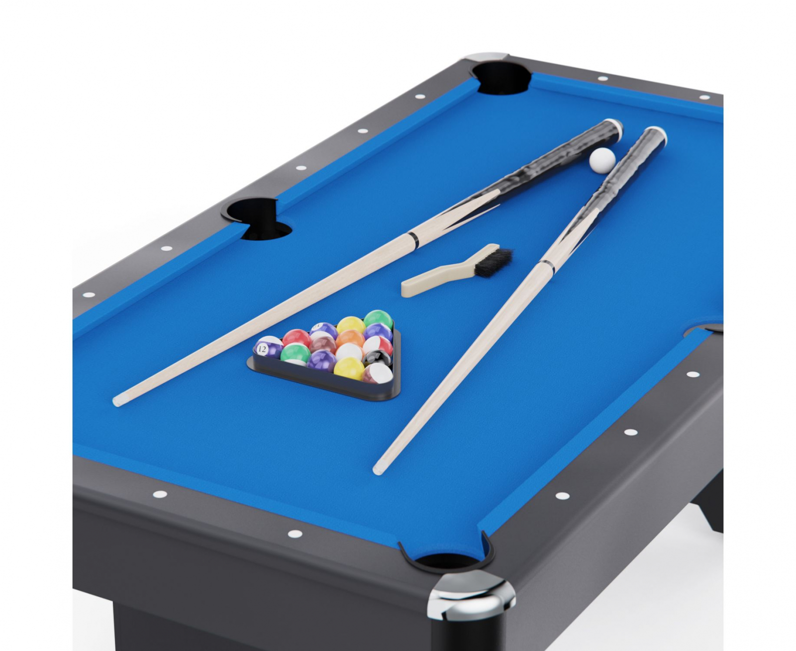 Всё, что нужно для начала — уже включено: комплект бильярдных шаров диаметром 57 мм, два кия длиной 144,8 см, треугольник для выравнивания, щётка для ухода за покрытием и два мелка. Это делает стол отличным выбором как для новичков, так и для опытных игроков, которые ищут качественный домашний бильярдный стол.