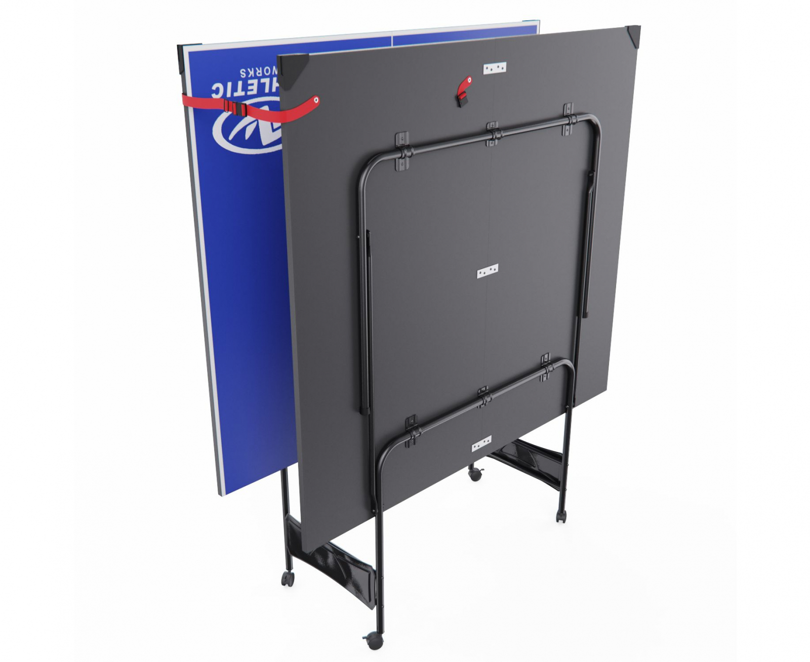 Модель складная, и в сложенном виде имеет компактные размеры 66 х 152 х 186,5 см, что делает её удобной для хранения даже в квартире. Встроенные транспортировочные ролики позволяют легко перемещать стол по комнате без лишних усилий.
