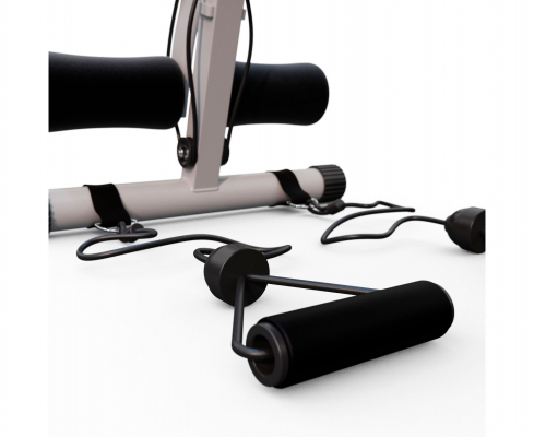 Три уровня нагрузки и наличие валиков для жима ногами позволяют подобрать оптимальный режим тренировки для каждого пользователя. Встроенные эластичные шнуры позволяют дополнительно прорабатывать другие группы мышц.