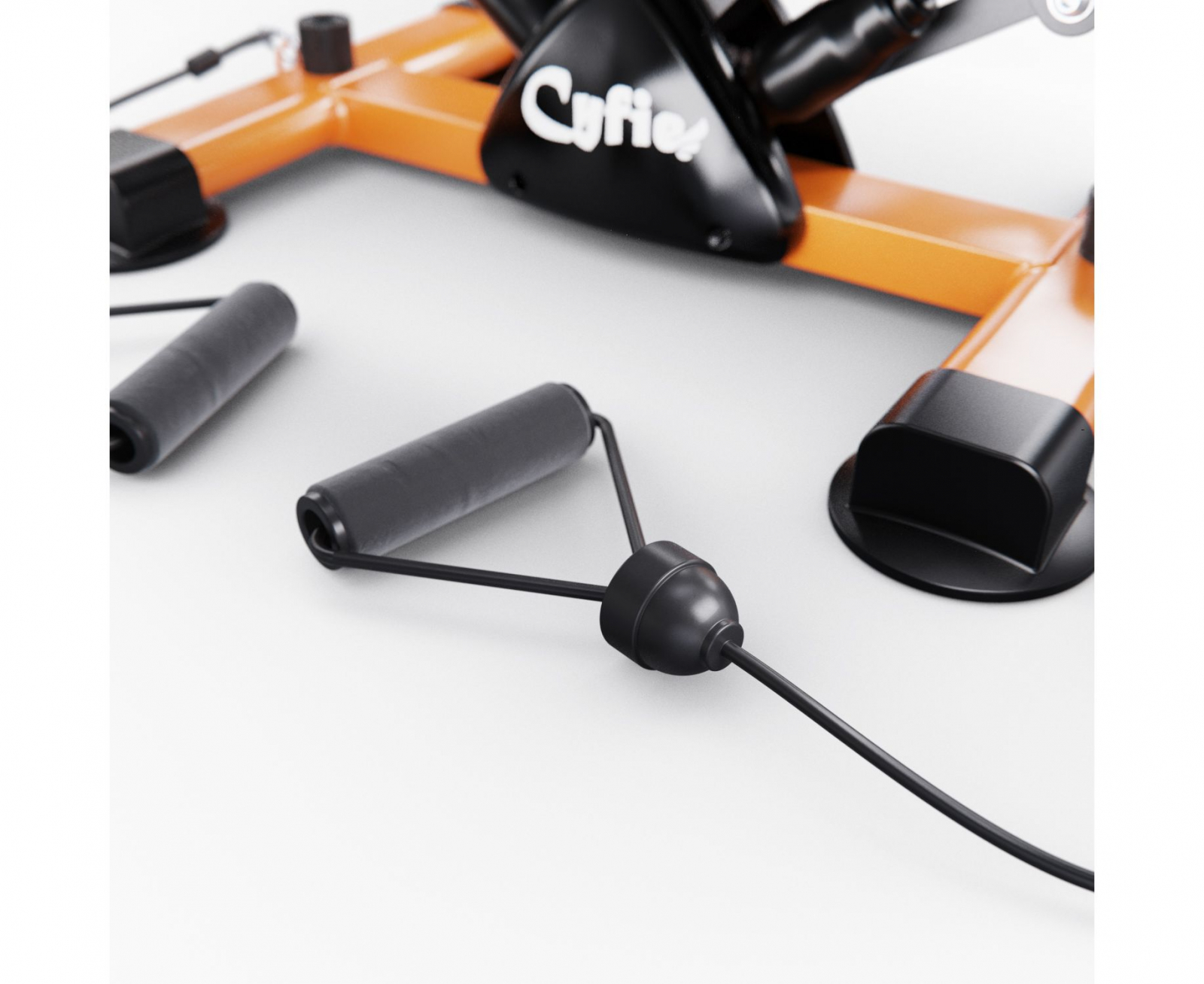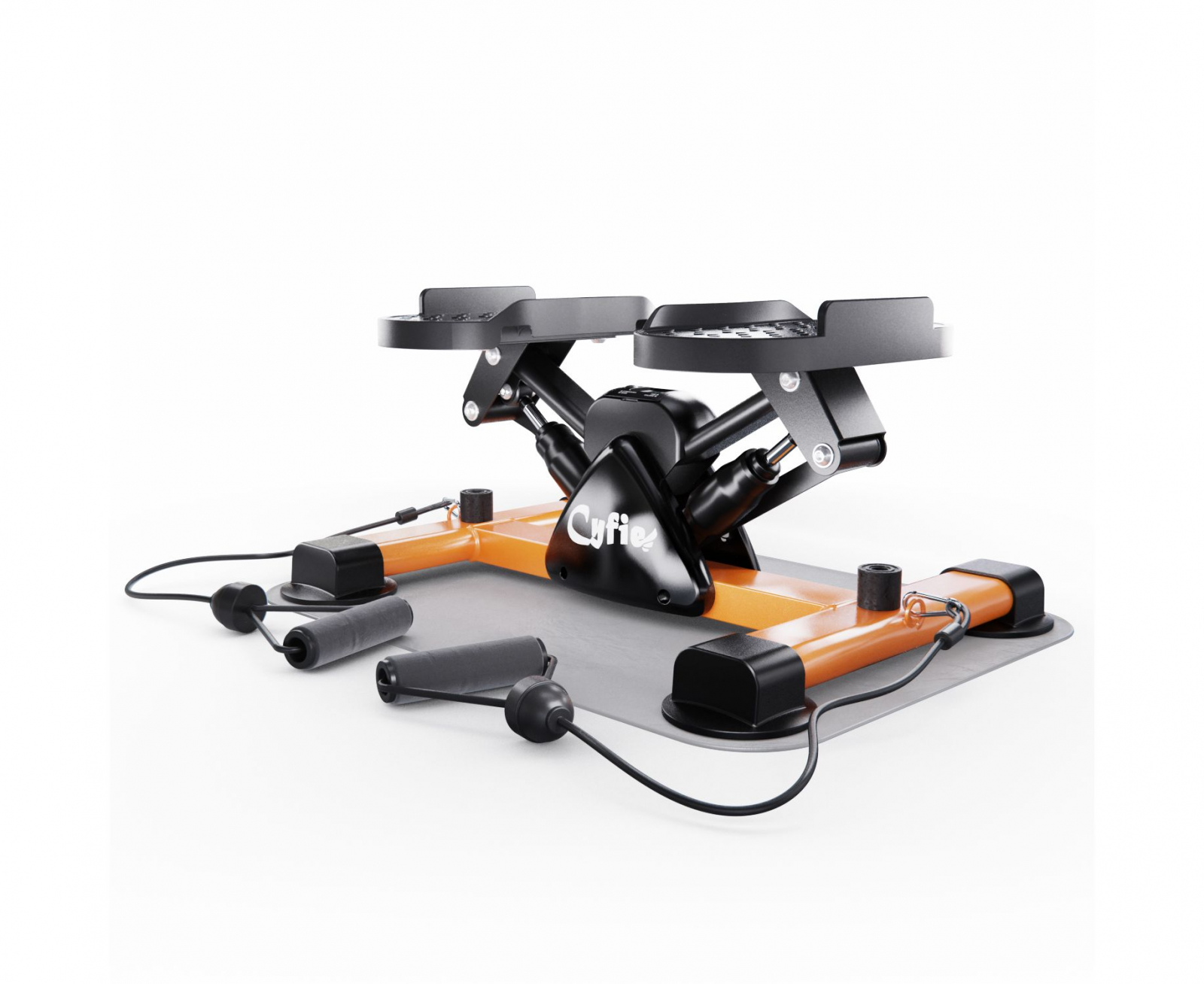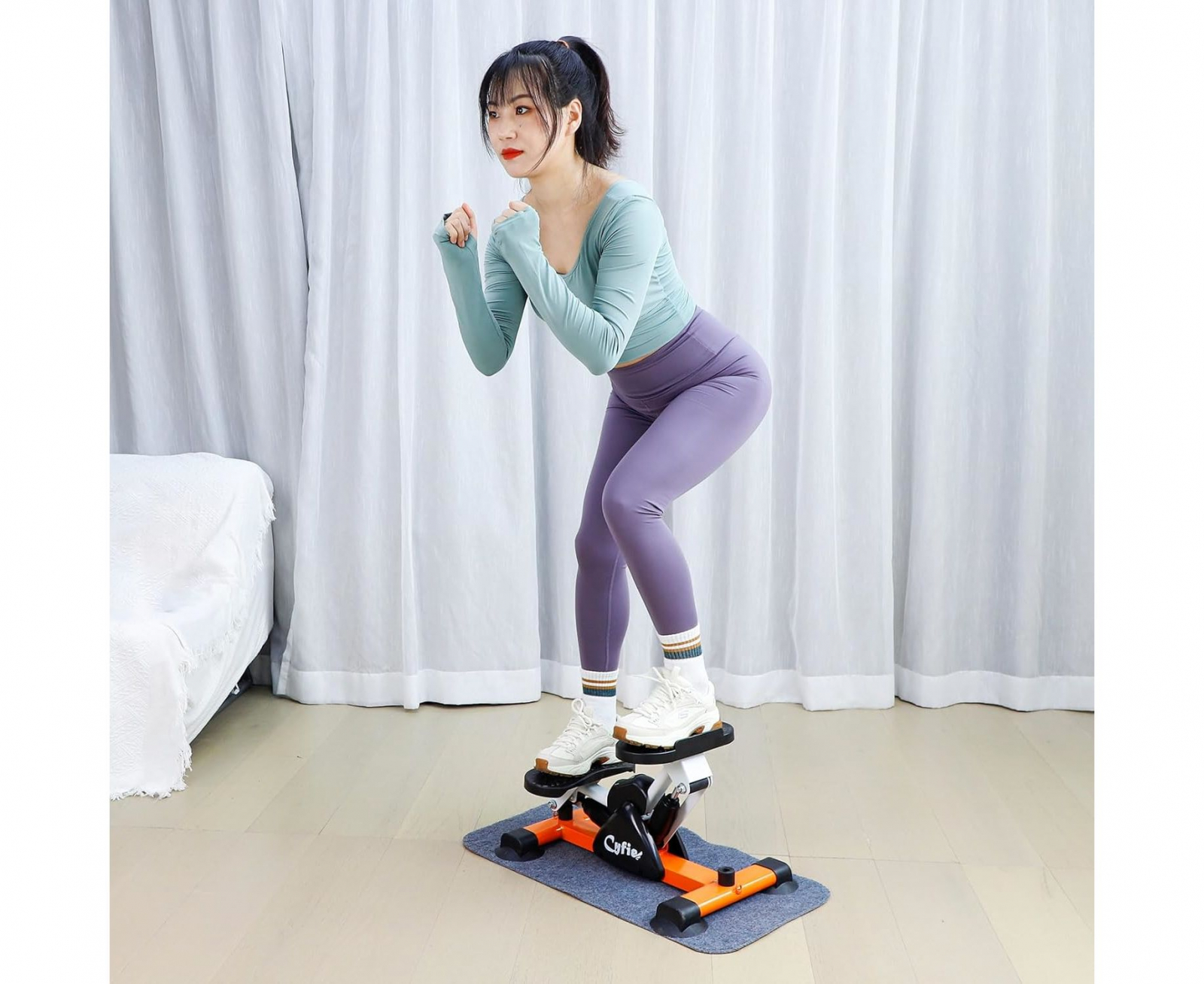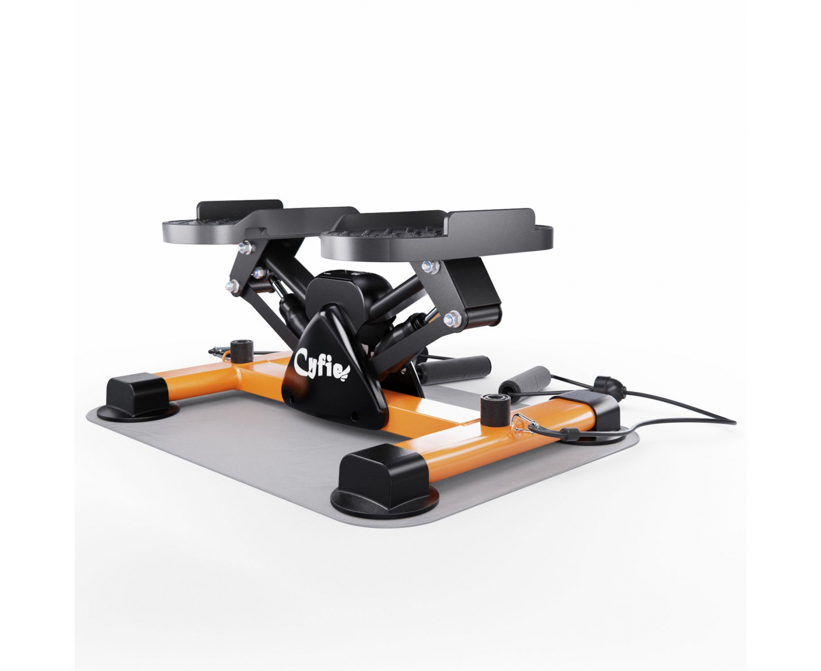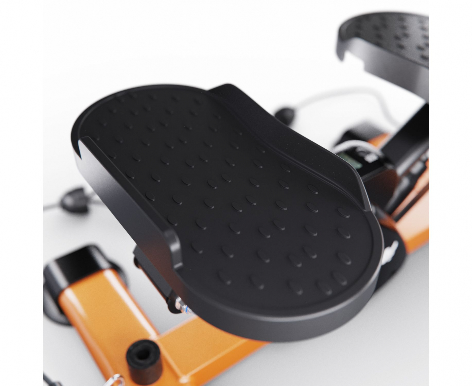 Балансировочный степпер с ковриком и эспандерами DFC CYFIE — идеальный тренажер для ног, который сочетает в себе функциональность, эффективность и стильный дизайн. Этот компактный степпер тренажер для дома позволит вам тренироваться в комфортных условиях, укрепив сердечно-сосудистую систему и проработав основные группы мышц: бедра, икры и верхнюю часть тела. Модный и яркий оранжевый цвет создает позитивную атмосферу, поднимая настроение во время занятий.Максимальный вес пользователя для занятий на степпере равен 100 кг. Использование высококачественного гидравлического цилиндра обеспечивает долговечность и минимальный уровень шума во время тренировки. Степер имеет небольшой размер 54 x 34 x 26 см и легко помещается в углу комнаты, что делает его отличным выбором для небольших пространств.Рифленые педали размером 27 x 12 см обеспечивают надежное сцепление с обувью и предотвращают скольжение во время упражнений, обеспечивая безопасность. Регулируемая высота педалей от 18 до 31 см позволяет индивидуально настраивать степпер под необходимую нагрузку и уровень комфорта пользователя. Оптимальное расстояние между педалями 16,5 см обеспечивает естественное положение ног во время тренировок, что способствует правильной биомеханике движений. Это минимизирует нагрузку на суставы, позволяя избежать чрезмерного напряжения в стопах и голенях.Степпер тренажер оснащен монохромным LCD дисплеем, который отображает ключевые параметры во время тренировки: время, калории, количество шагов , количество шагов в минуту и режим сканирования. Для работы дисплея потребуется 1 батарейка типа AAA (в комплект не входит).В комплекте антивибрационный коврик размером 72 x 36,5 см для защиты пола и комфортной тренировки, а также эспандеры 76 см для одновременной проработки нижней и верхней части тела, что делает тренировки более разнообразными и эффективными. Резиновые накладки на нижней части министеппера предотвращают скольжение и повышают устойчивость, добавляя уверенности при выполнении упражнений.Балансировочный мини степпер тренажер DFC CYFIE — это универсальный тренажер для похудения, который станет отличным помощником в поддержании физической формы!
