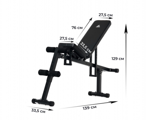 Скамья для домашних тренировок имеет компактные размеры — 139 х 33,5 х 51 см, благодаря чему занимает мало места в помещении (идеально для дома или квартиры). Её вес всего 16 килограмм. Это позволяет легко перемещать скамью в удобное для выполнения упражнения место.