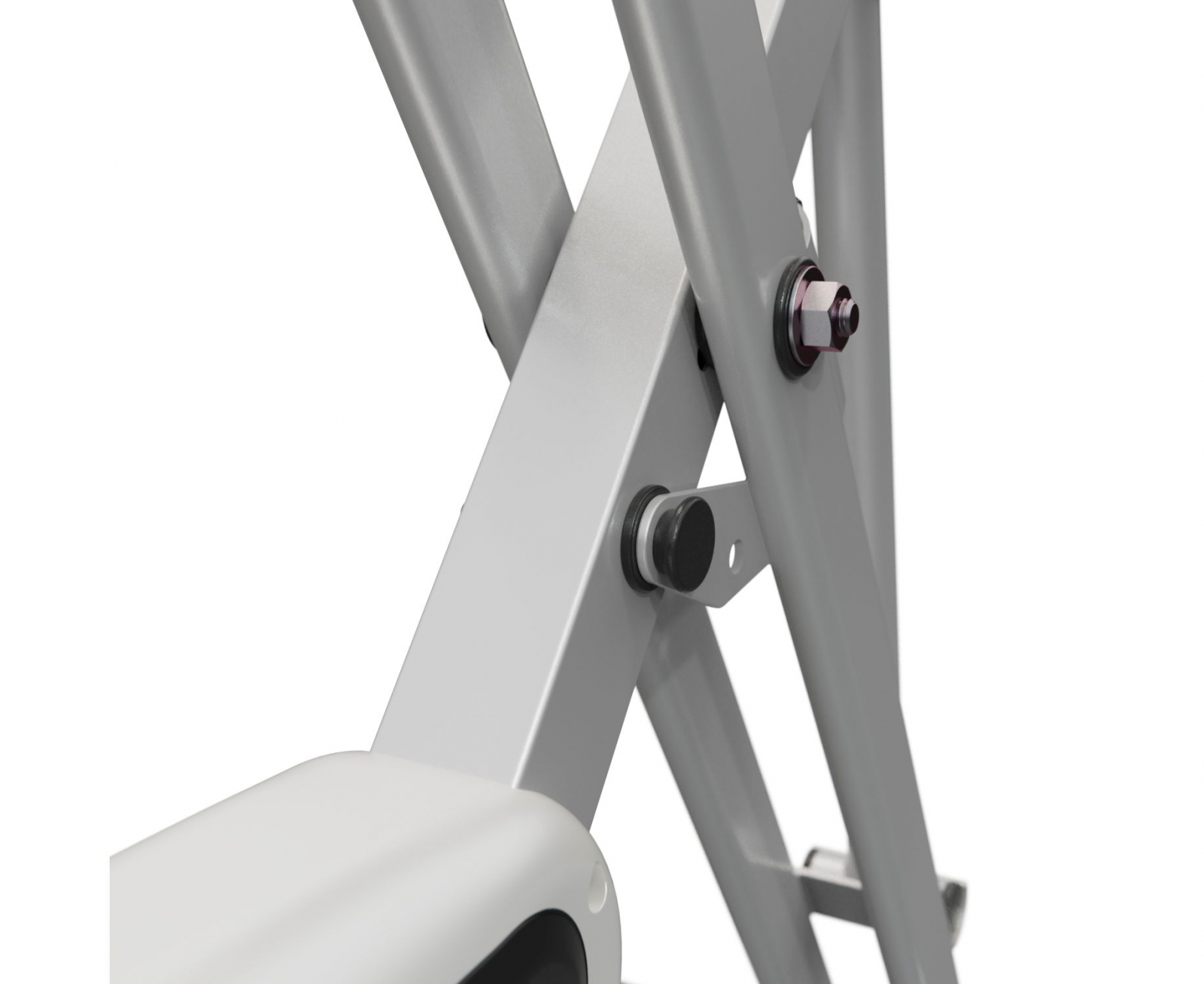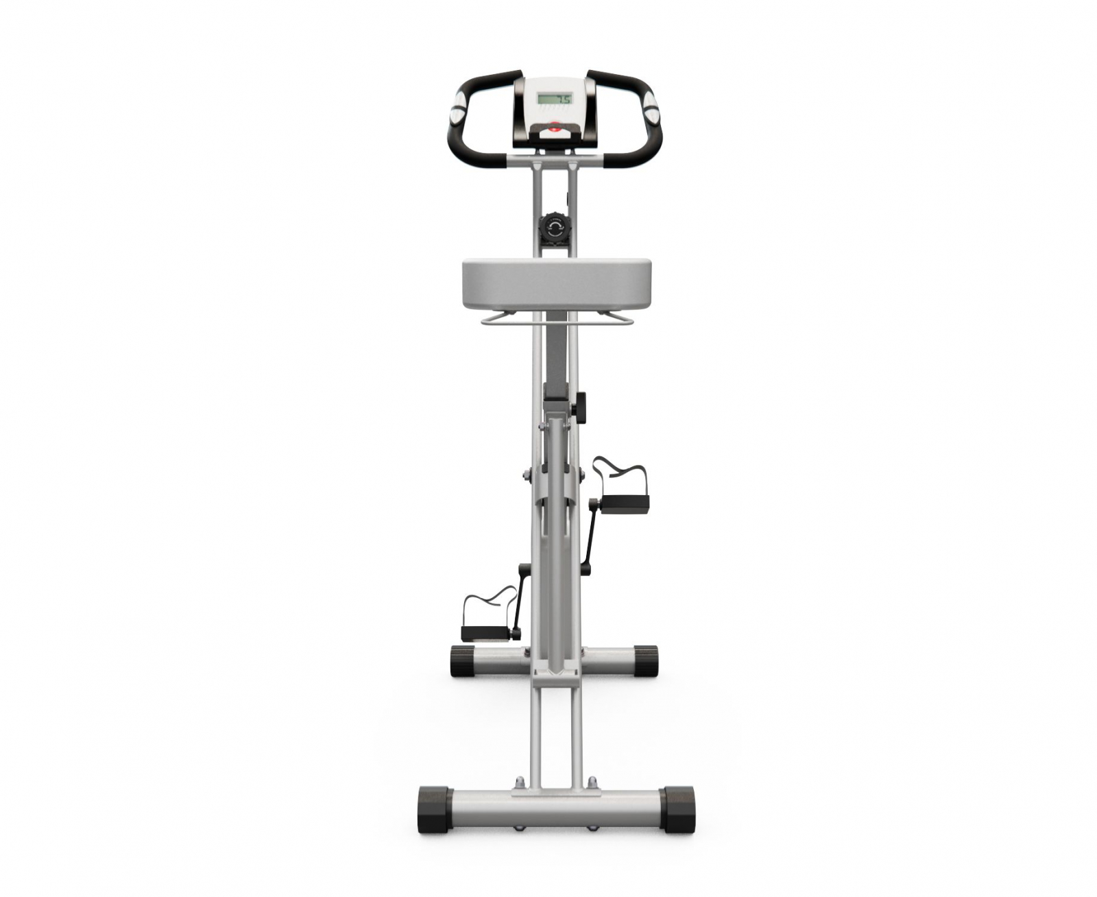 Конструкция велотренажера складная, что позволяет легко его хранить и транспортировать. Сиденье оснащено держателем для полотенца - это очень удобно для пользователей. Тренажер оборудован компенсаторами неровностей пола для стабилизации и карманом для хранения мелких предметов.