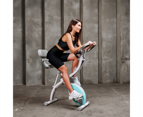 Велотренажёр модели X-Bike нежно-голубого цвета предназначен для пользователей с максимальным весом до 110 кг, что делает его универсальным вариантом для домашнего использования.