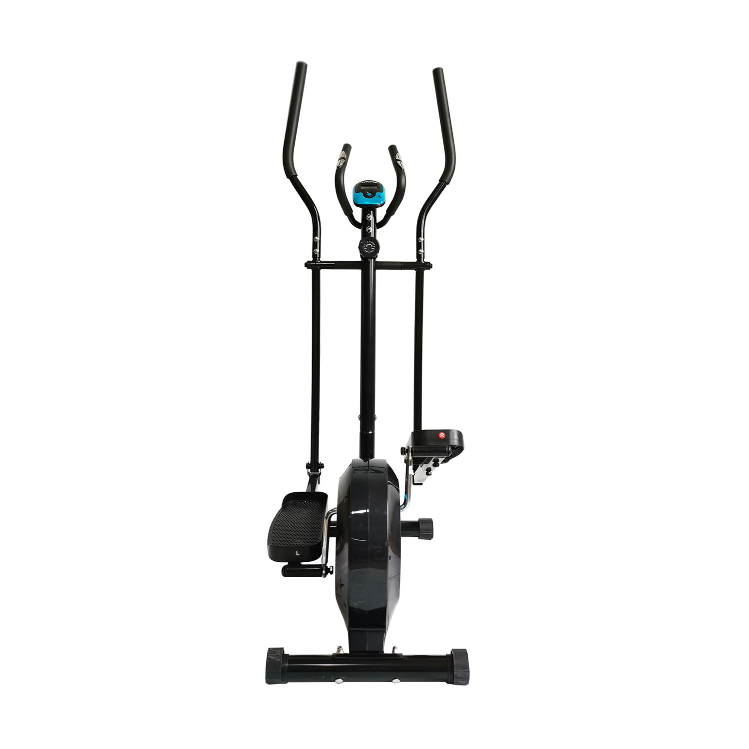 Эллиптический тренажер для домашнего использования. Модель с высокоскоростным маховиком и магнитной системой нагружения.Механическая (ручная) регулировка изменения нагрузки с помощью рукоятки на стойке тренажера. 8 промежуточных положений.Консоль с LCD-экраном компьютера отображает все необходимые параметры тренировки: время, скорость, дистанция, калории, скан, пульс.Датчики пульса расположены на дополнительных рукоятках тренажера.Большие педали с нескользящим покрытием и бортиком по краям.