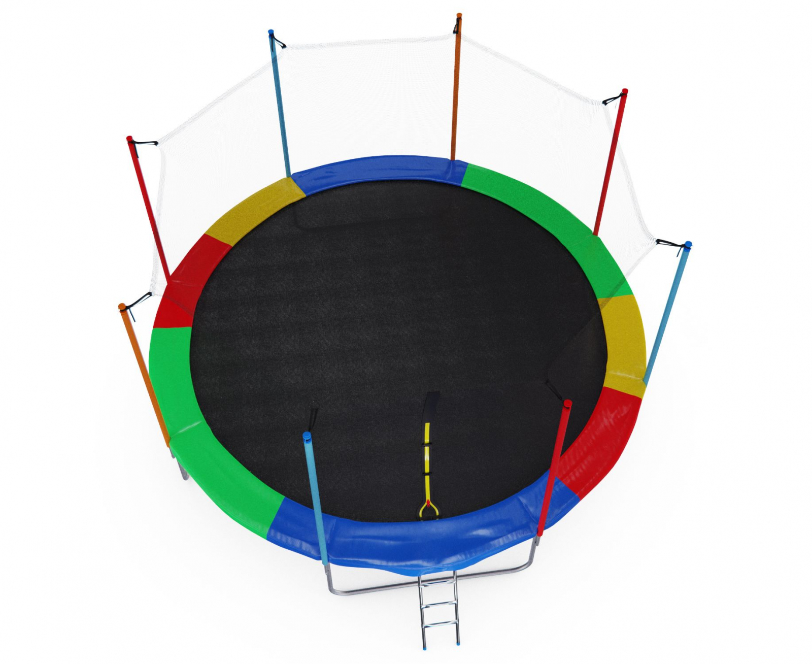 Основная рама изготовлена из восьми U-образных стальных труб диаметром 38 миллиметров и толщиной 1,3 миллиметра, что обеспечивает ее прочность и долговечность. Ножки U-образной формы, выполнены из стальных труб диаметром 38 миллиметров и толщиной 1,3 миллиметра, что придает батуту устойчивость и надежность.