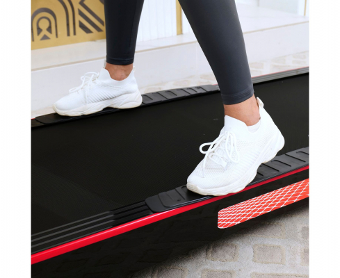 По бокам от бегового полотна расположены нескользящие подножки для начала тренировки: перед началом занятий встаньте на них, а затем запустите тренажёр. Система амортизации снижает ударные нагрузки на суставы и мышцы, что предотвращает возможные травмы.