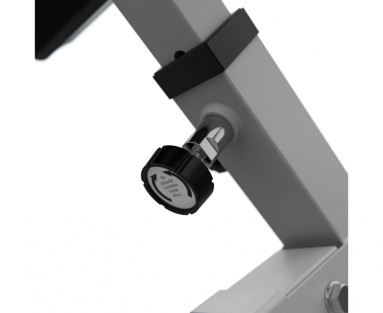 Высота тренажера регулируется, что позволяет настроить его под разный рост пользователей. Подушка имеет четыре положения регулировки в диапазоне 16 см, а размер подушки составляет 44 х 30 х 4,5 - 7 см. Валики для ног можно регулировать в трех положениях. Рама тренажера изготовлена из стального профиля размером 50х50х1,5 мм и 45х45х1,5 мм, и выдерживает нагрузку до 120 кг.