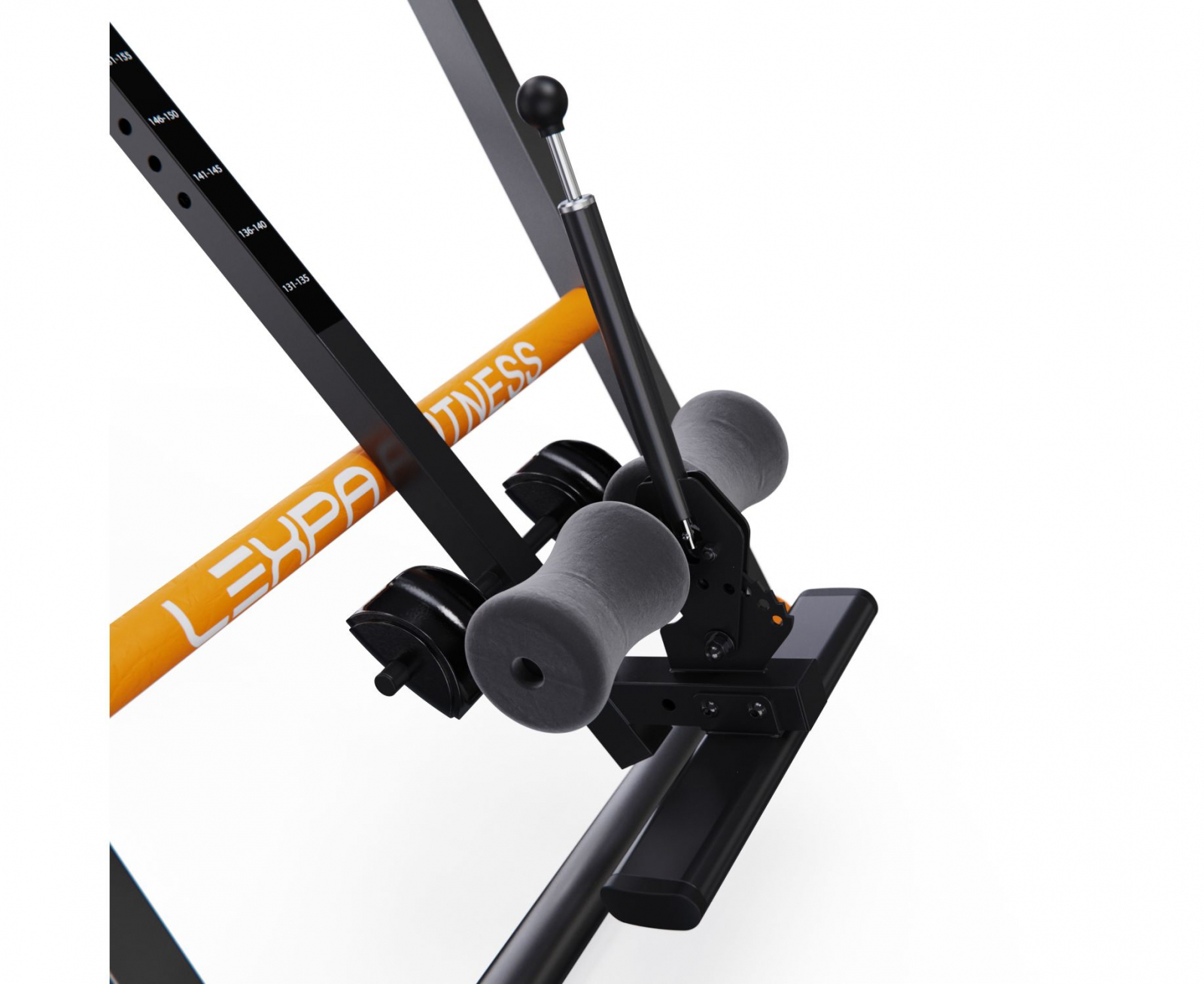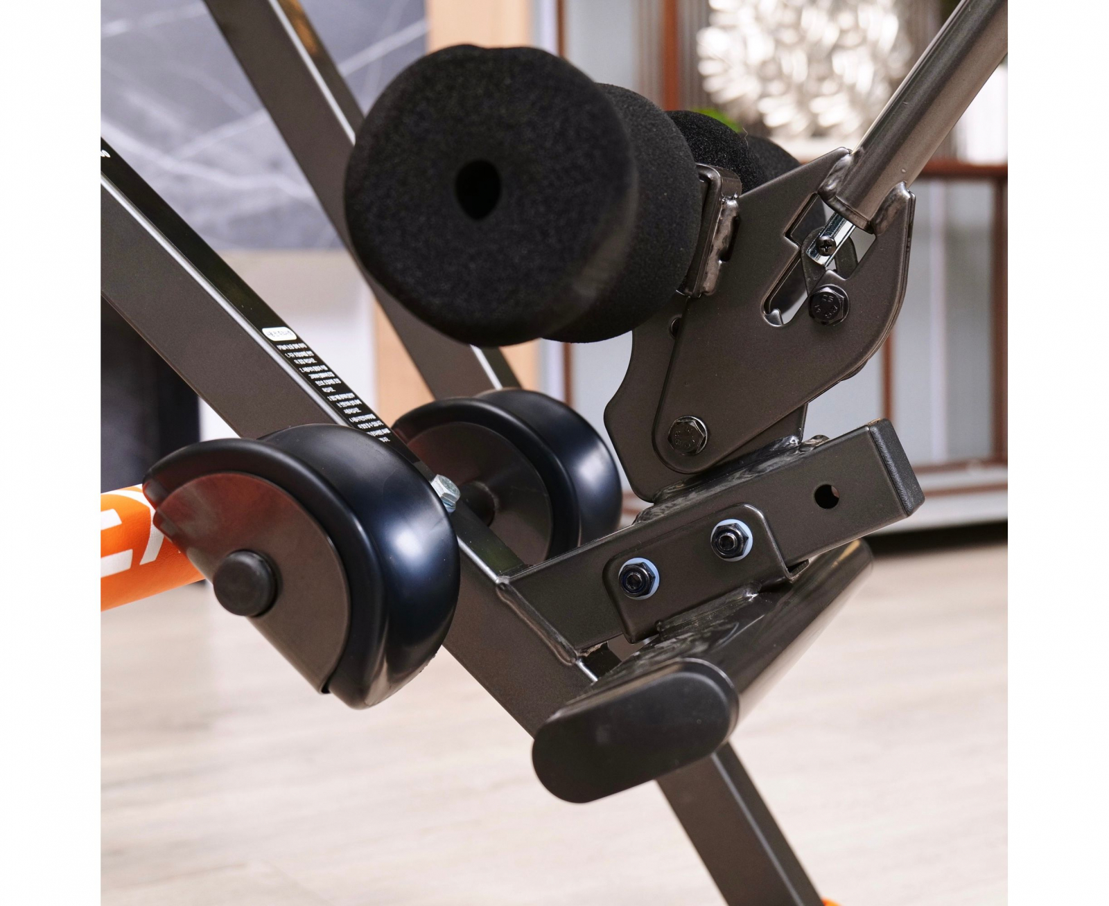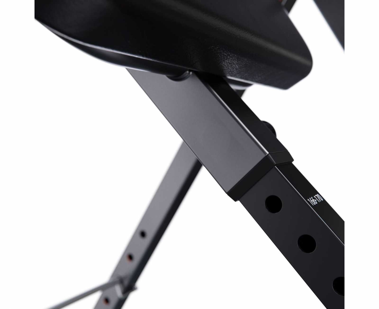 Ноги закрепляются благодаря держателям стопы и мягким валикам из водоотталкивающего поролона, что делает использование надёжным и комфортным. Также стол оснащён страховочным ремнём и нескользящими ручками, которые обеспечивает безопасность во время выполнения упражнений.