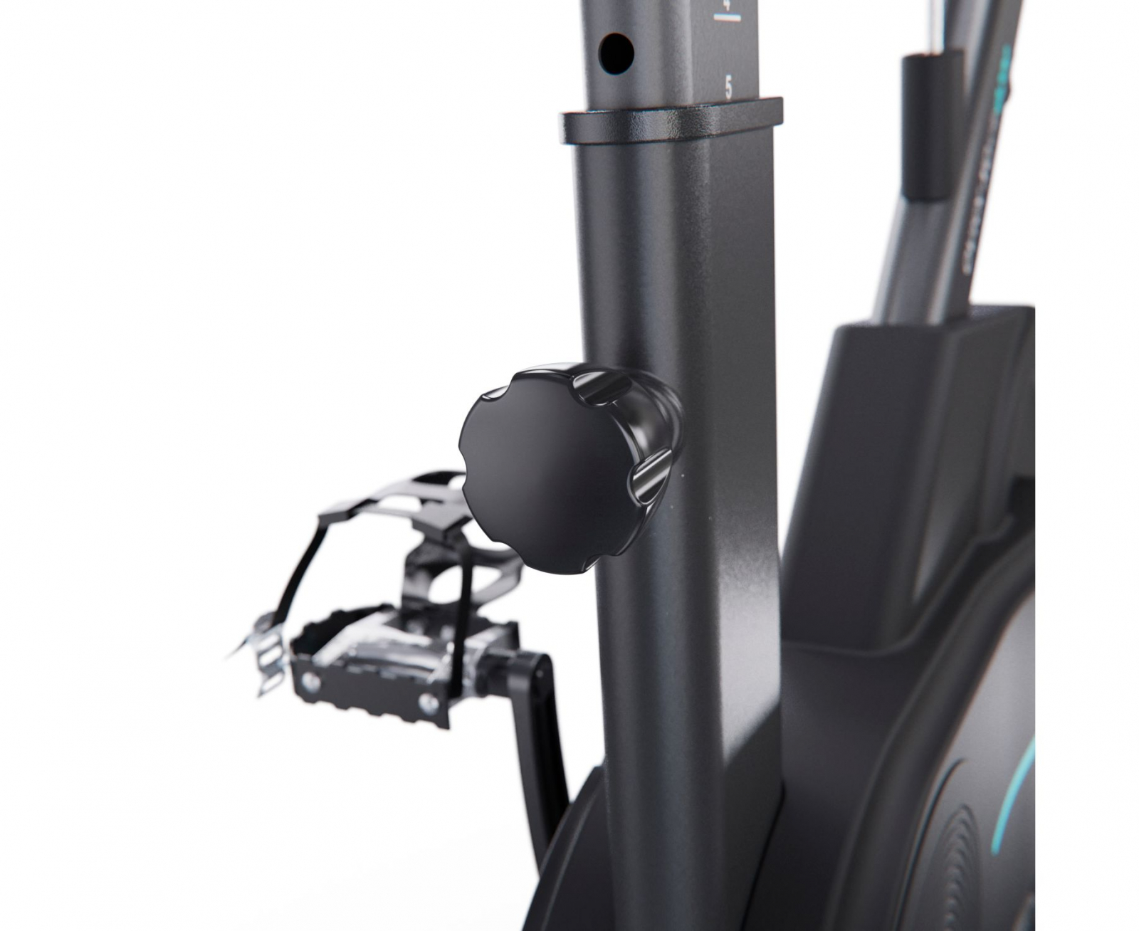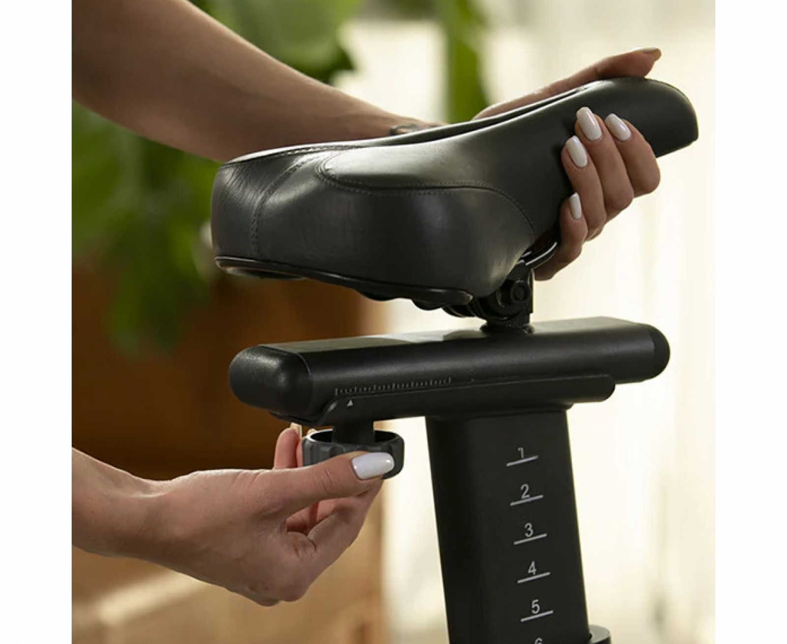Сиденье велосипеда можно регулировать не только по высоте и направлению, но и по углу наклона, что позволяет изменять интенсивность тренировки и оптимизировать положение пользователя на сиденье. Руль регулируется по высоте для дополнительного комфорта и разнообразия. Велотренажёр рассчитан на вес пользователя до 130 кг.
