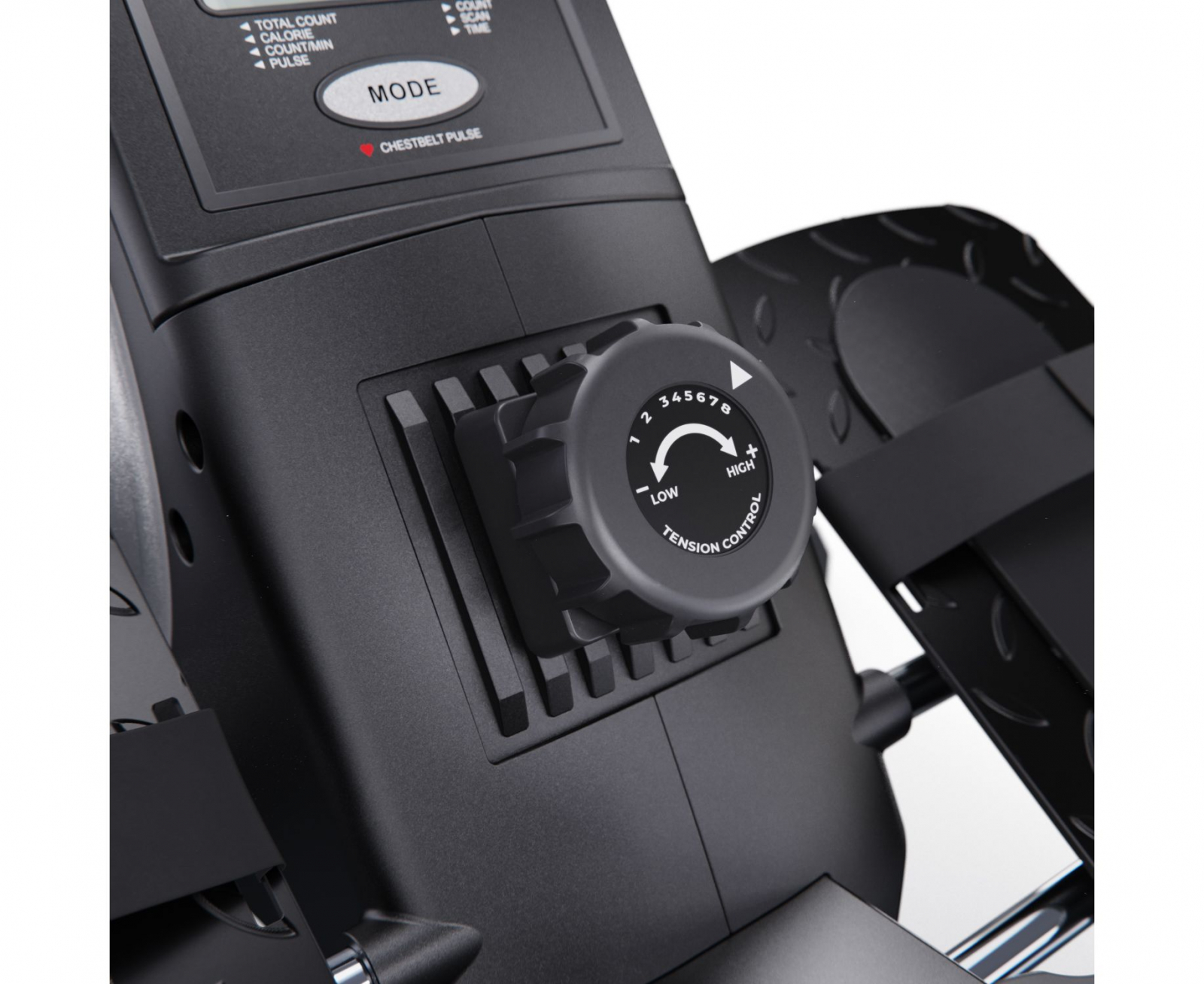 Кардиотренажер для ног и рук оснащён маховиком весом 4 килограмма и имеет магнитную систему нагрузки, что обеспечивает плавный и тихий ход. 8 уровней нагрузки.