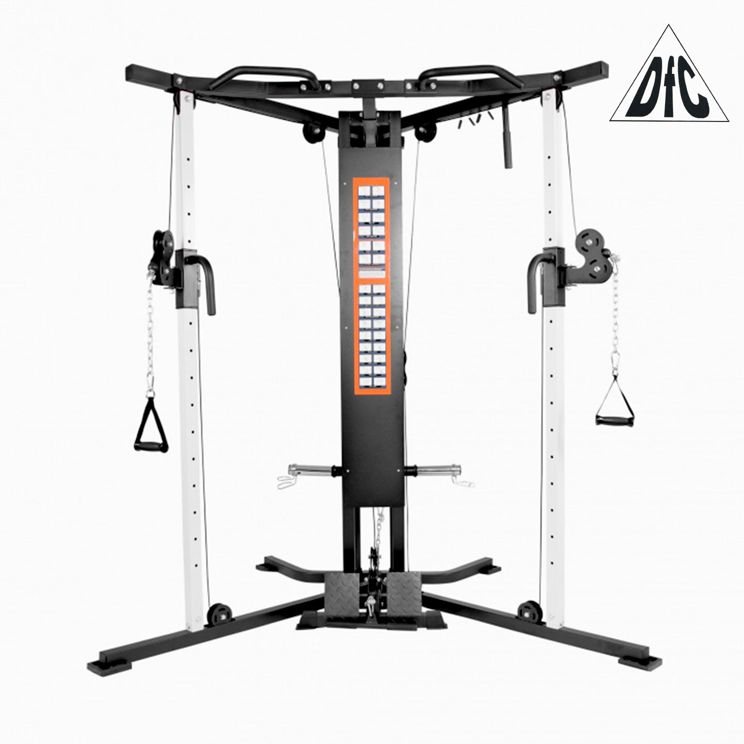 В комплекте: 2 рукоятки, гриф маленький для нижней тяги, пружинные замки - фиксаторы.