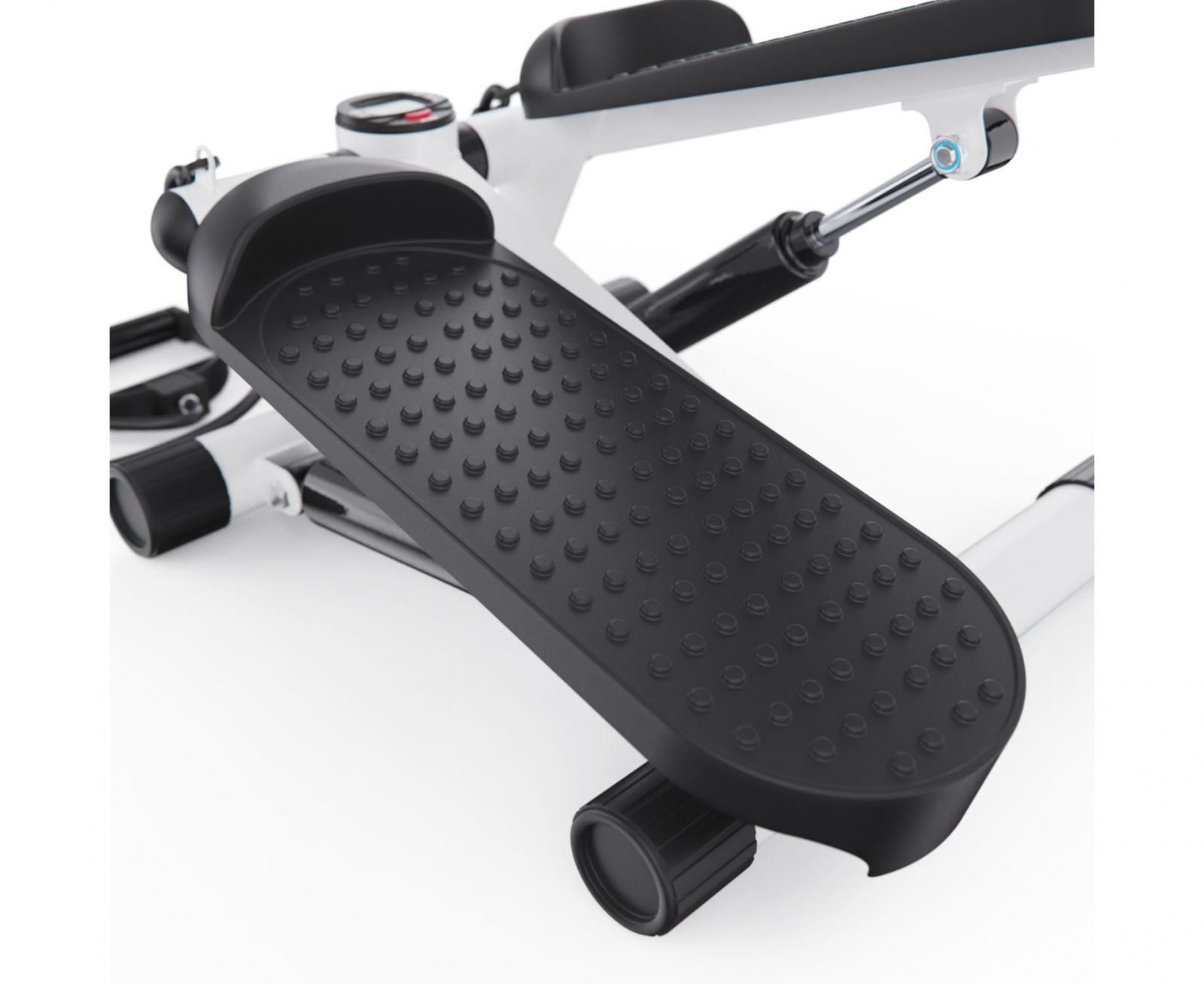 Педали степпера имеют размеры 31,5 х 11,5 см, а благодаря ручке на раме тренажёра вы можете регулировать высоту их подъёма, выбирая оптимальный уровень нагрузки. Чем выше поднимаются педали, тем больше усилий вам нужно прилагать, и наоборот.