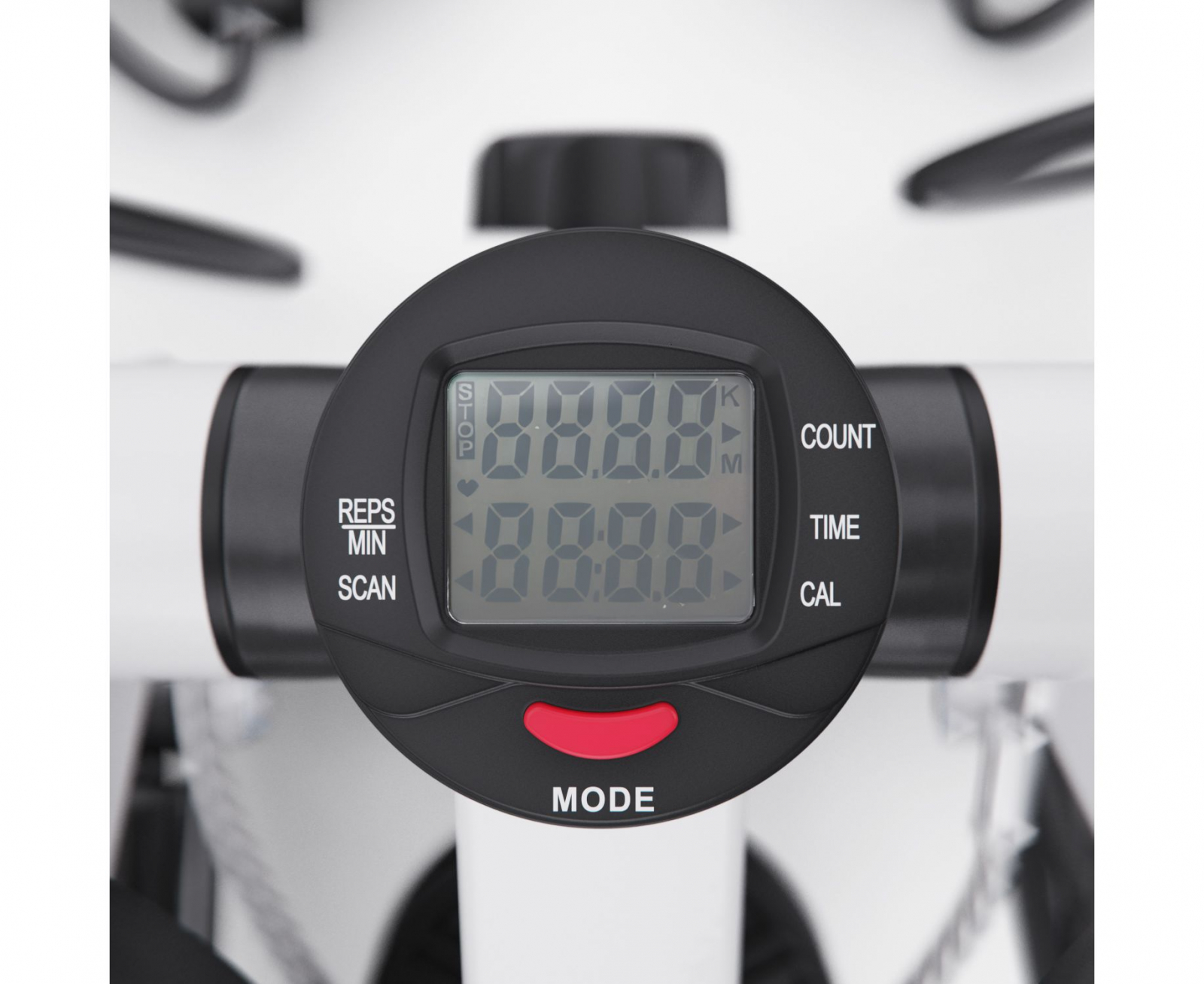 В комплекте с мини степпером идут съёмные эспандеры и батарейка формата LR44. Монохромный LCD дисплей степера показывает время, количество сожженных калорий, количество шагов, количество шагов в минуту и режим сканирования, делая ваши тренировки универсальными.