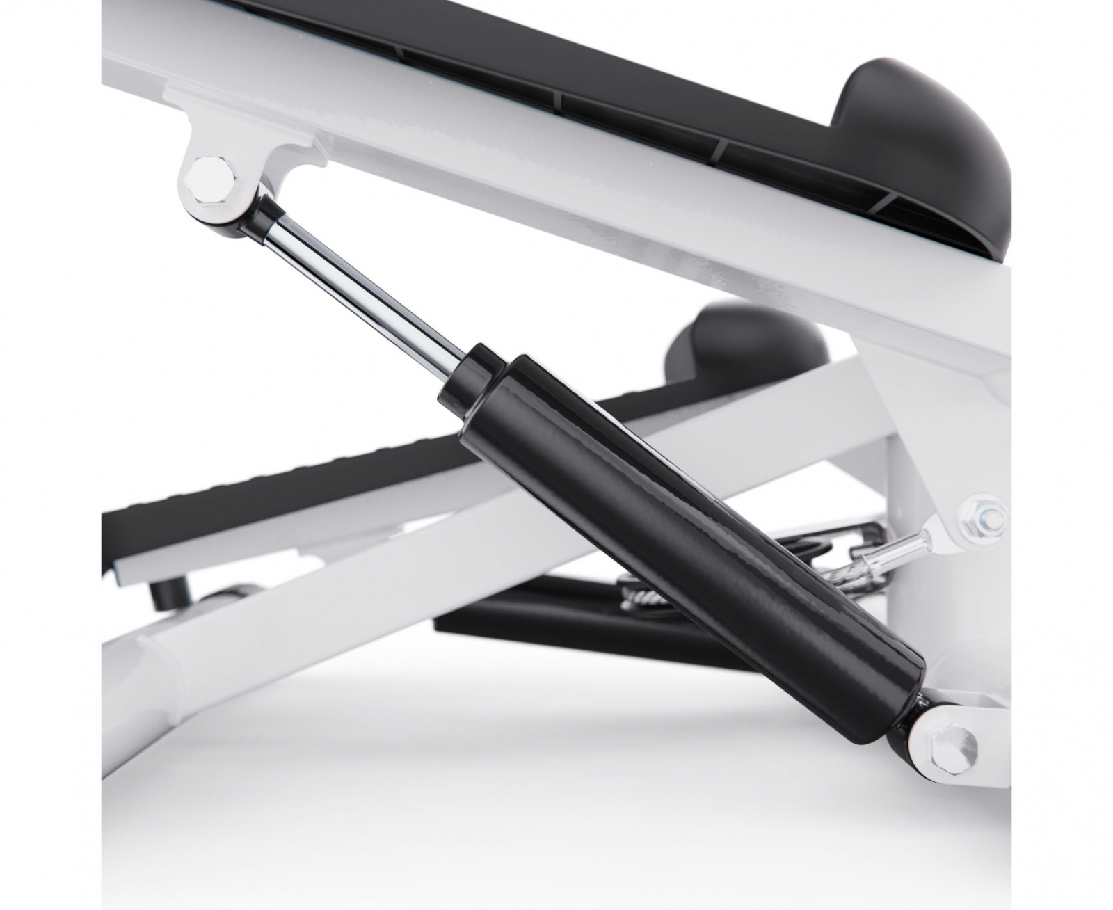 Степпер способен выдержать пользователя весом до 100 кг и имеет компактные размеры 40,5 х 29 х 19 см. Гидравлическая система обеспечивает плавное и последовательное движение, а благодаря механической регулировке вы сможете настроить уровень сложности под свои потребности.