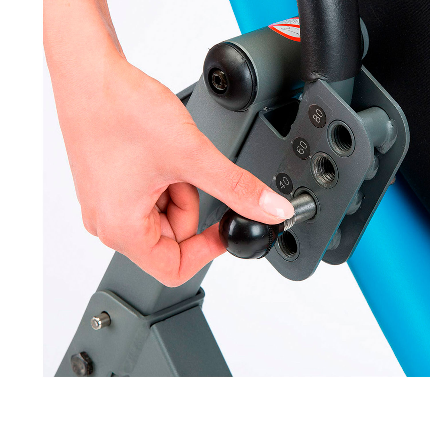 Стол позволяет зафиксировать нужный угол наклона с помощью фиксатора под правую руку.Для удобства выбора необходимого угла на корпусе есть указатель напротив каждого положения: 20° - 40° - 60° - 80°.Если ограничитель не устанавливать, то возможно отклонится в вертикальное положение (головой в пол).