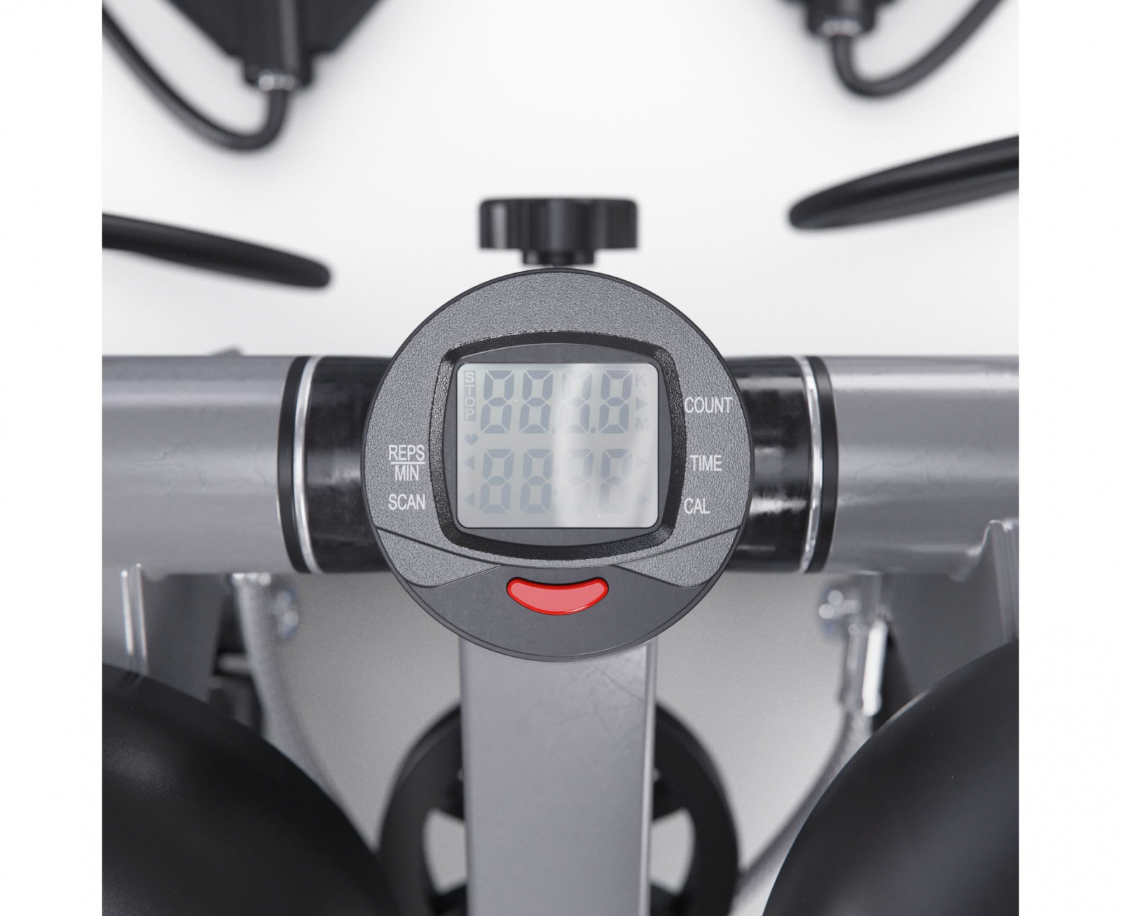В комплекте с мини степпером идут съёмные эспандеры и инструменты для сборки и обслуживания. LCD дисплей степера показывает время, количество сожженных калорий, количество шагов, количество шагов в минуту и режим сканирования, делая ваши тренировки универсальными.