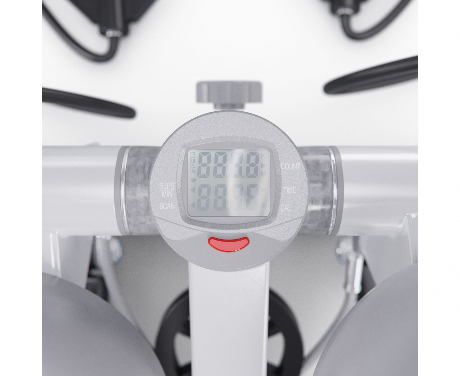 В комплекте с мини степпером идут съёмные эспандеры и инструменты для сборки и обслуживания. LCD дисплей степера показывает время, количество сожженных калорий, количество шагов, количество шагов в минуту и режим сканирования, делая ваши тренировки универсальными.