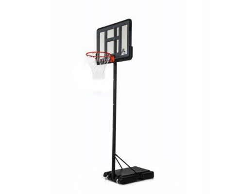Мобильная баскетбольная стойкаSTAND44A003 для домашнего использования. Размер стойки 44 дюйма. Размер щита из ПВХ 110 х 75 см, толщина – 2 мм. Кольцо с амортизатором диаметром 45 см чёрного цвета с сеткой в комплекте. Высота стойки регулируется от 145 до 305 см. Основание стойки на колёсах, его размер 90 х 60 х 15 см.