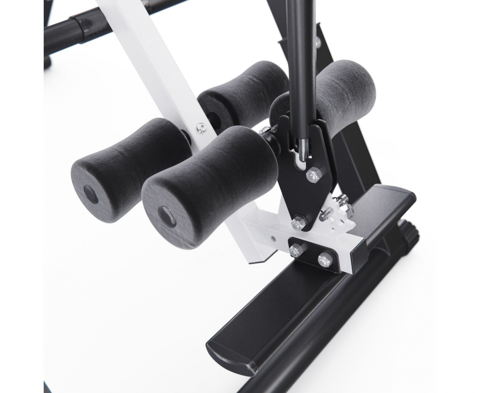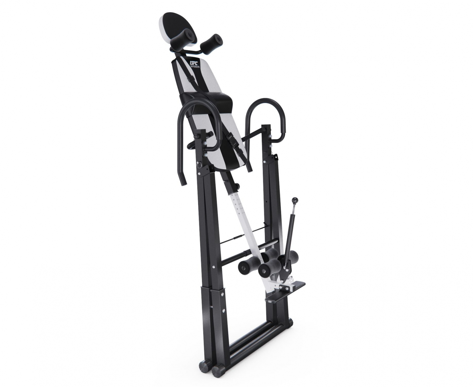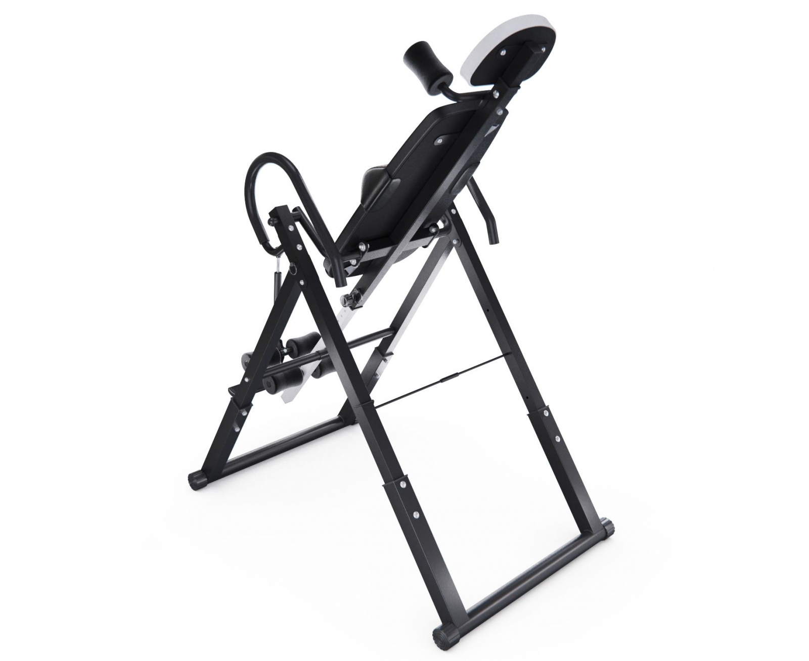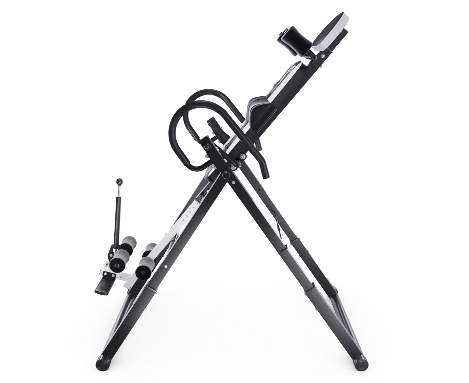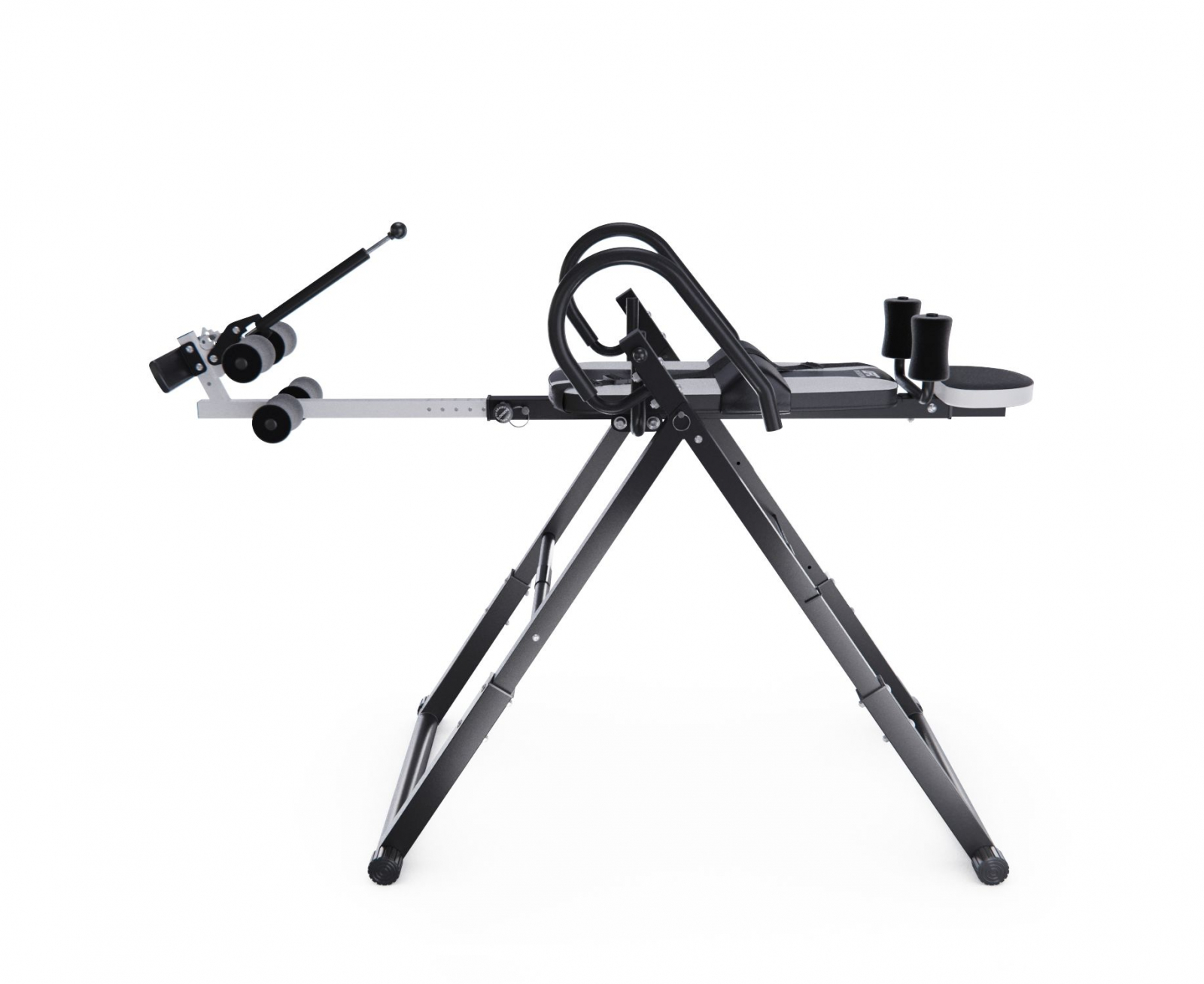 Максимальный вес пользователя составляет 150 кг. Ограничитель угла наклона в виде перекладины позволяет регулировать угол наклона в трёх положениях. Складная конструкция стола облегчает хранение и транспортировку.