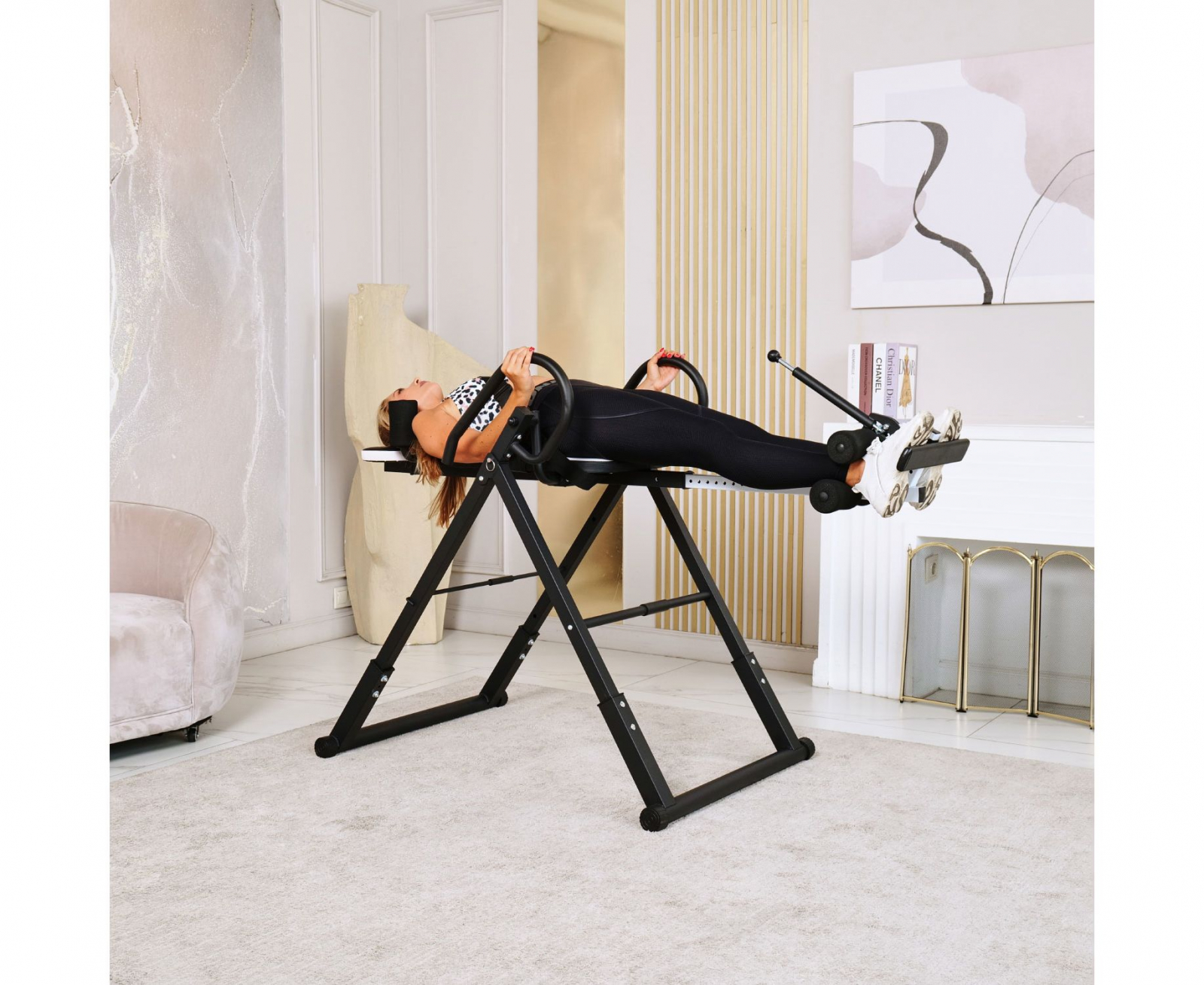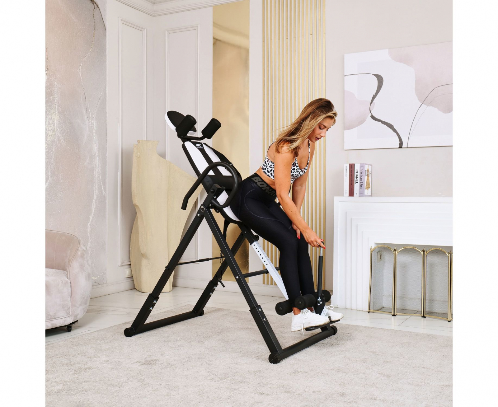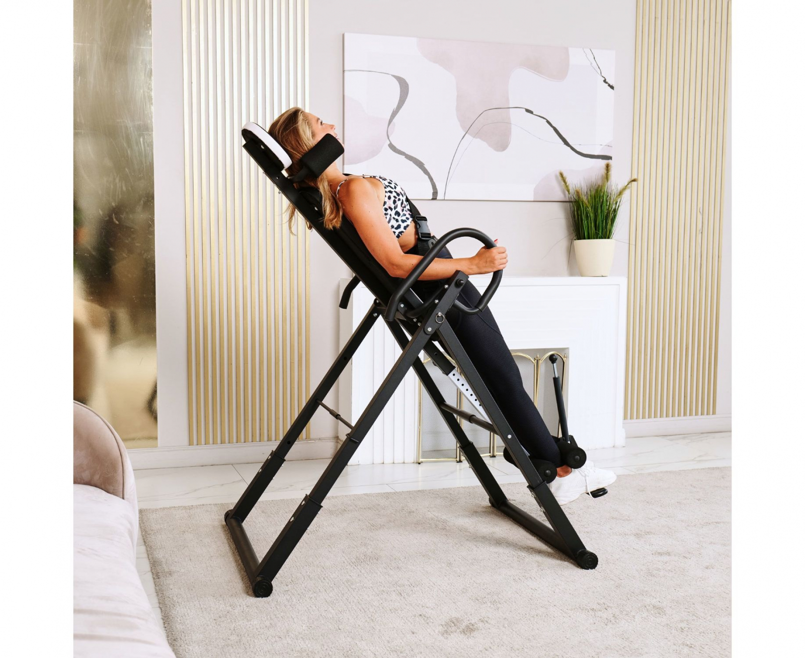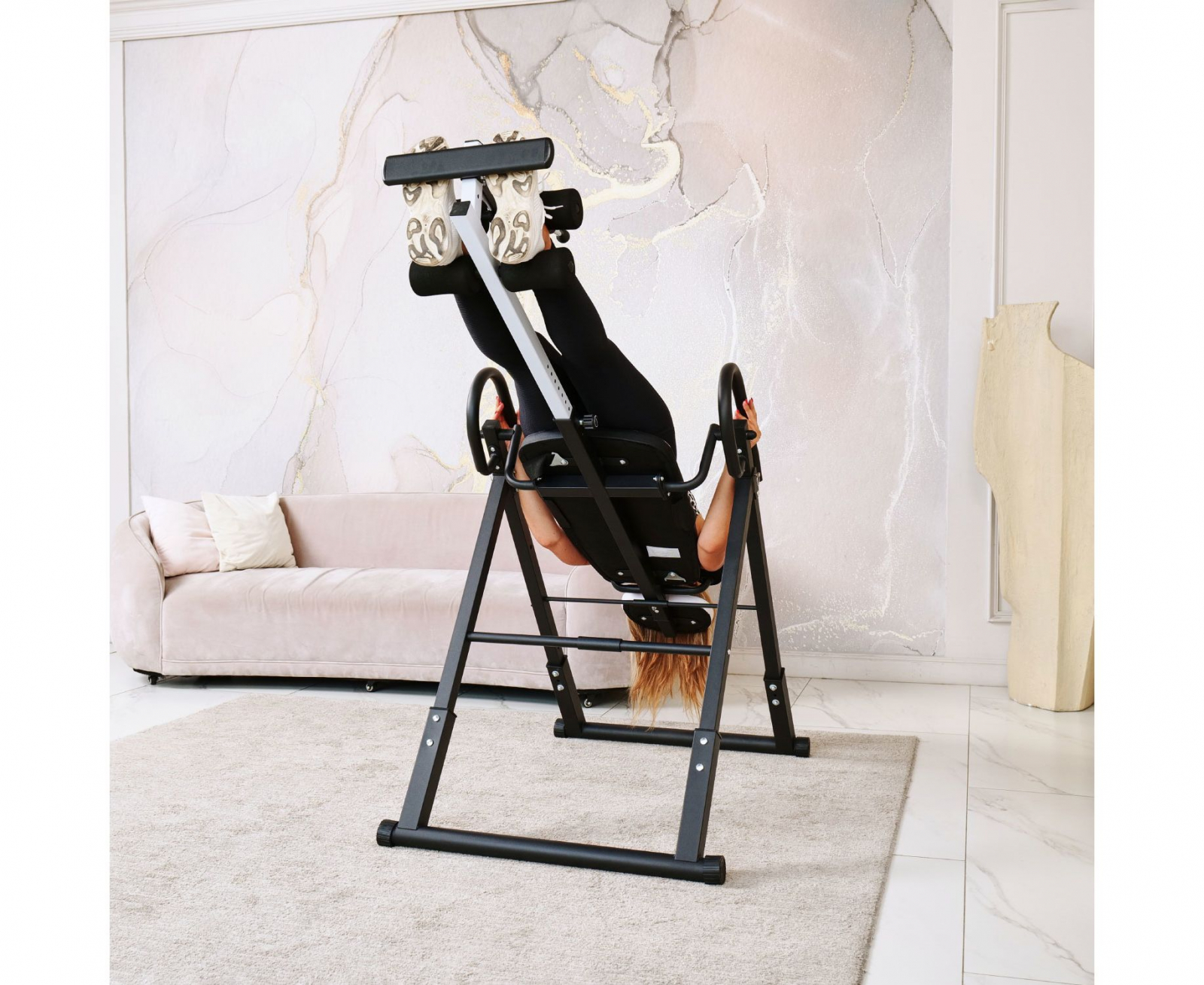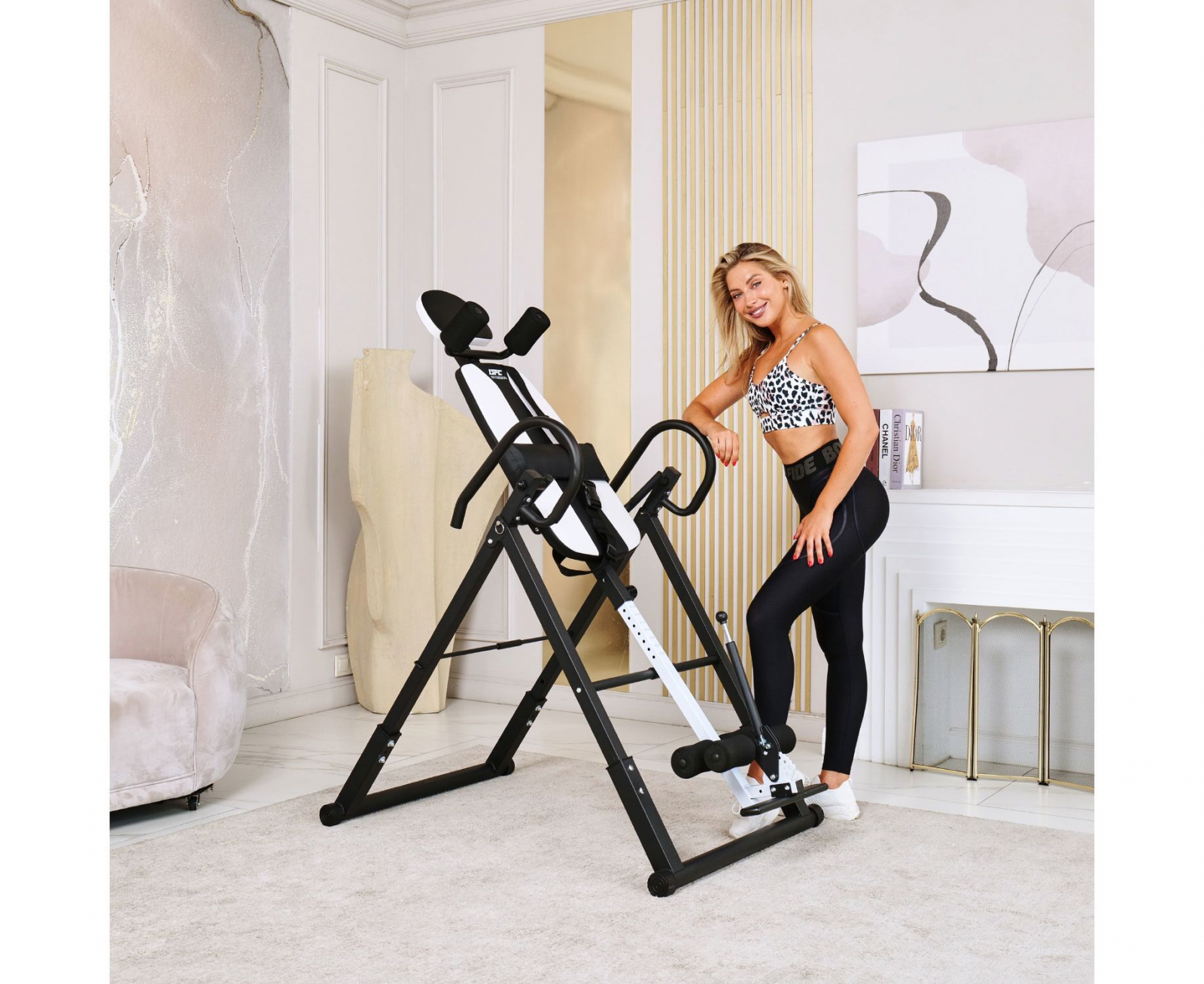 Инверсионный стол DFC IT6312A-W — это удобный и эффективный тренажёр для улучшения осанки, укрепления связок и улучшения кровообращения. Он имеет спинку белого цвета с валиками под голову и съёмную подушку под поясницу для дополнительного комфорта. Страховочный ремень входит в комплект, двойные валики для удобства использования.