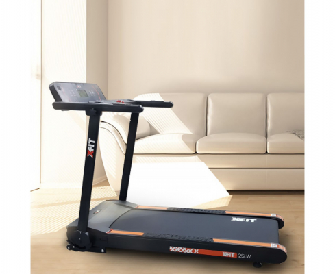 Электрическая беговая дорожка DFC X-Fit T-2Slim предлагает эффективные и удобные тренировки благодаря компактной складной конструкции и вертикальному хранению. Эта модель оснащена 40 различными программами тренировок, включая режим тестирования жировых отложений, и пятью пользовательскими программами.