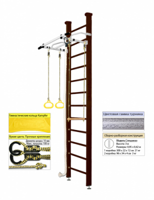Характеристики: — Высота модели "Высота 3 м": 3 м— Ширина шведской стенки: 65 см— Размер заглушки: 0,7 мм