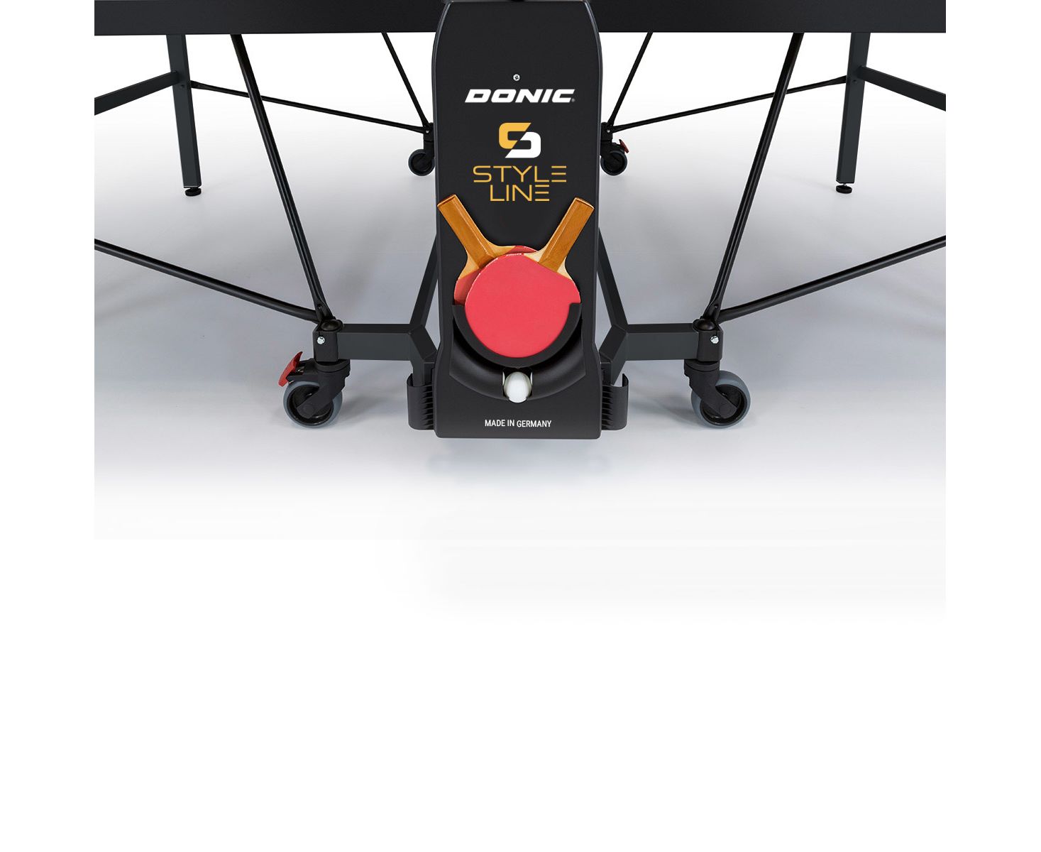 Стандарт/сертификат: DIN EN 14468-1, класс B, для школьных и клубных видов спортаСтолешница: ДСП нового поколения толщиной 22 мм, специальная поверхность, окрашенная специальной краской антрацитово-серого цвета для лучшего отскокаРама: рамный профиль толщиной 50 ммСетка: Регулируемая по высоте сетка для настольного теннисаХодовая часть: Порошковое покрытие (покрытие Long-time Surface)Ножки: Регулируемые по высоте ножки столаКолёса: 4 прорезиненных двойных ролика с плавным ходом диаметром 128 ммБезопасность: Защита от опрокидывания с фиксатором (двойная система фиксации)Дополнительно: В комплекте держатель для ракеток и мячей (ракетки и мячи не входят в комплект)Вес: 91 кгРазмеры для хранения: Размеры для хранения (с сеткой): 187 x 74 x 156 см (Д, Ш, В)Производство: Сделано в Германии