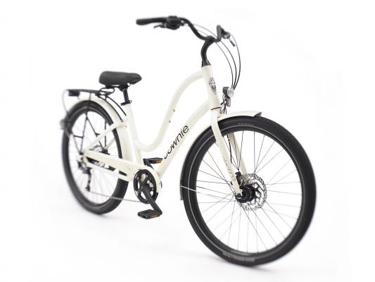 Комфортабельный женский круизер с оборудованием высшего любительского класса Shimano, 9 скоростей. Технические особенности: алюминиевая рама 6061-T6, жесткая алюминиевая вилка, двойные обода Alloy Double Walled, дисковые гидравлические тормоза Tektro. Оснащен подножкой и системой освещения, длинные крылья, багажник. Подходит для комфортного катания по паркам и городским улицам.