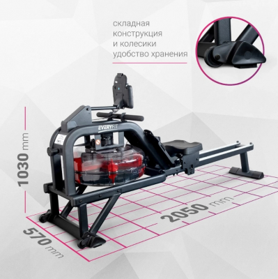 Everyfit ET-7446R — гребной тренажер для динамичных тренировок. На нем работают одновременно несколько групп мышц: бедер, плечевого пояса, пресса и рук. Тренажер подойдет для быстрого сброса веса и укрепления мышечного каркаса. Производители учли особенности строения тела человека, поэтому на гребном тренажере Everyfit уменьшена нагрузка на поясницу.